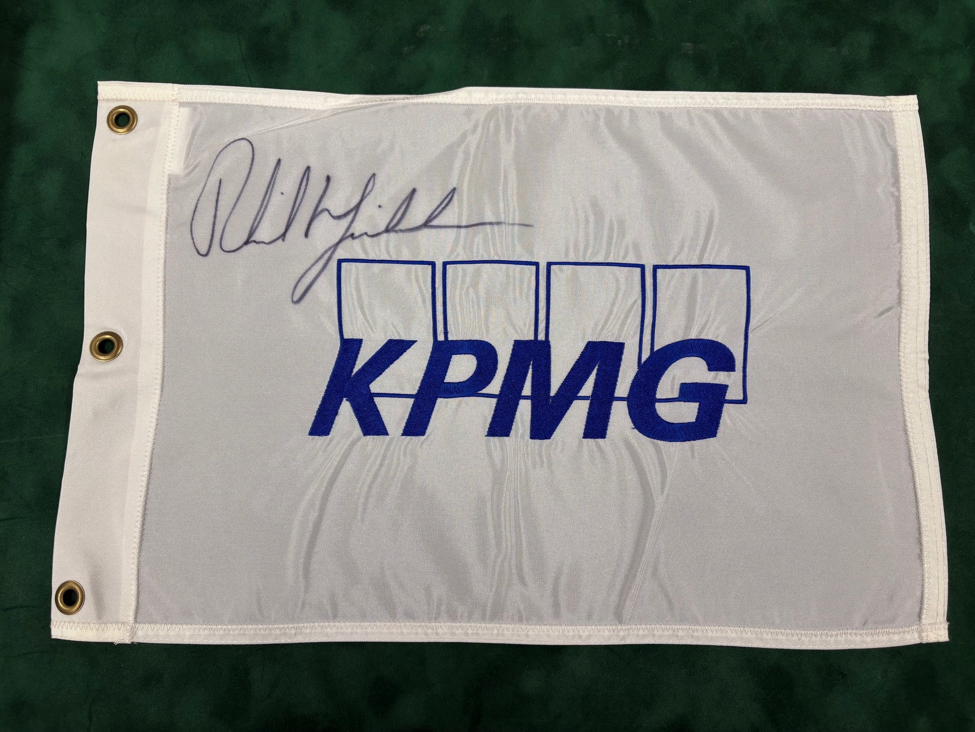 Phil Mickelson Rare Signed White & Blue KPMG Sponsored Golf Pin Flag /Dealer COA