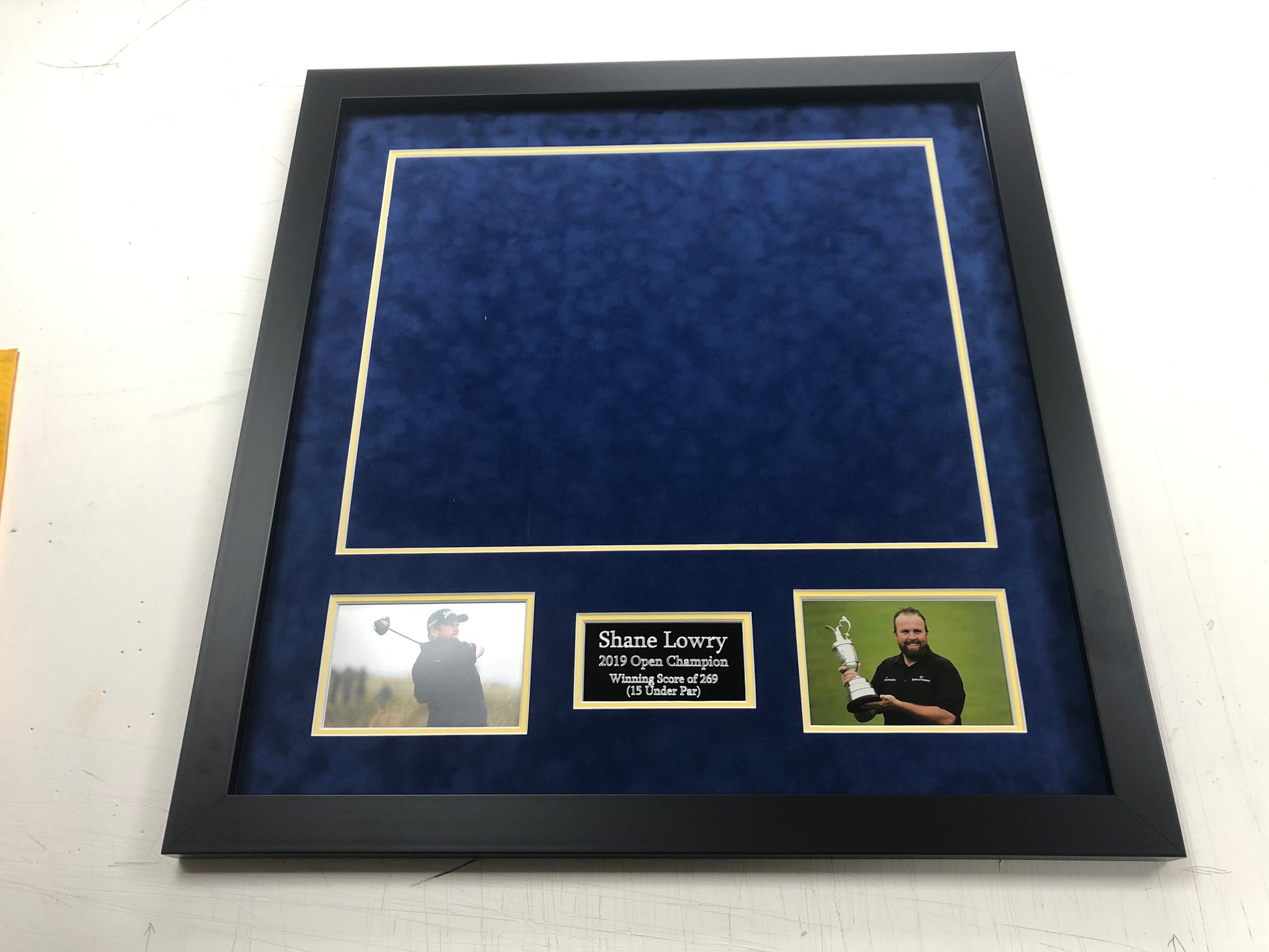 On offer here is a premium framing kit to add a flag to, signed or unsigned, by the Open Champion perhaps. Once completed these pieces make a wonderful display.