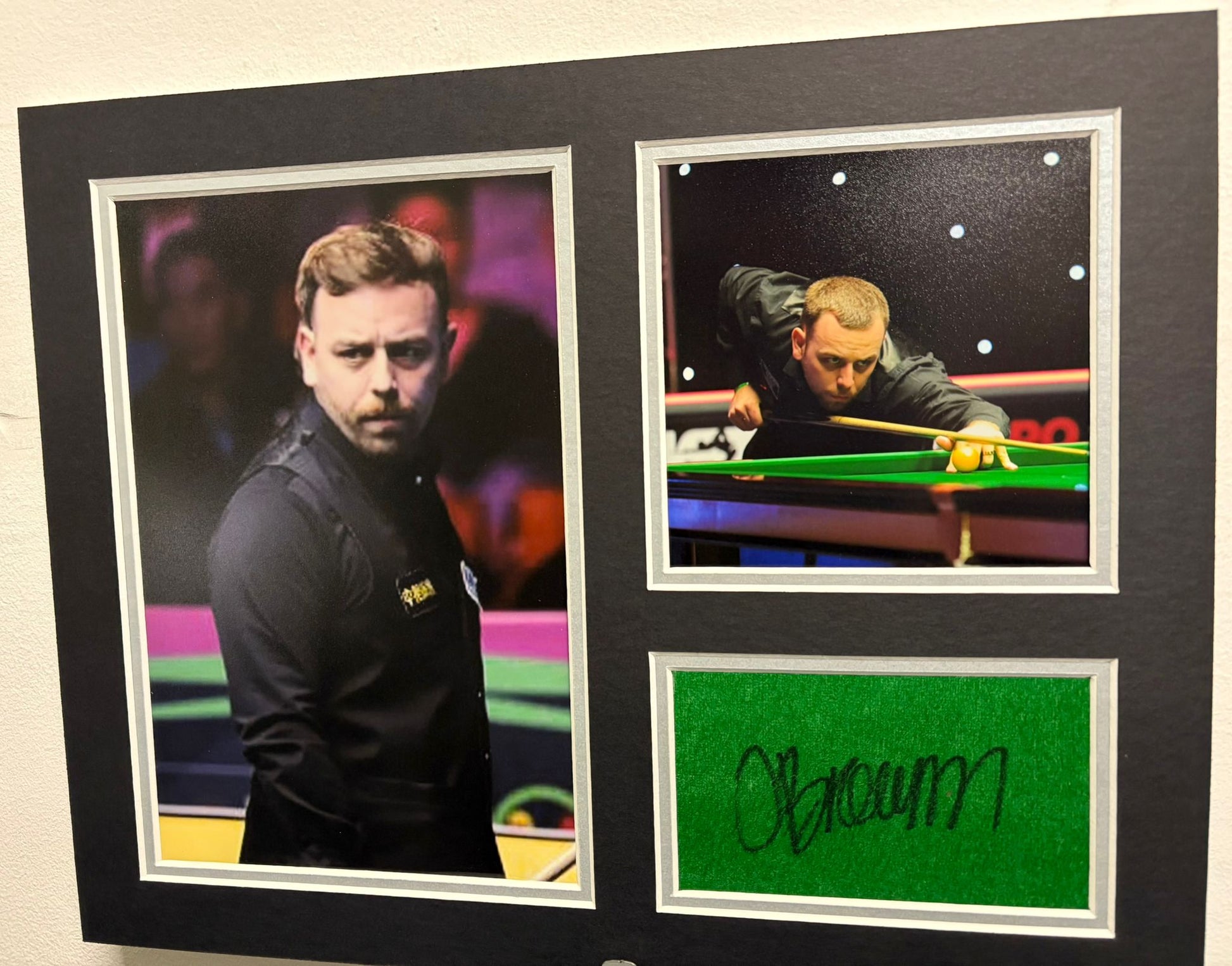 Professional Snooker Player Oliver Brown Signed Table Baize Display + Cert