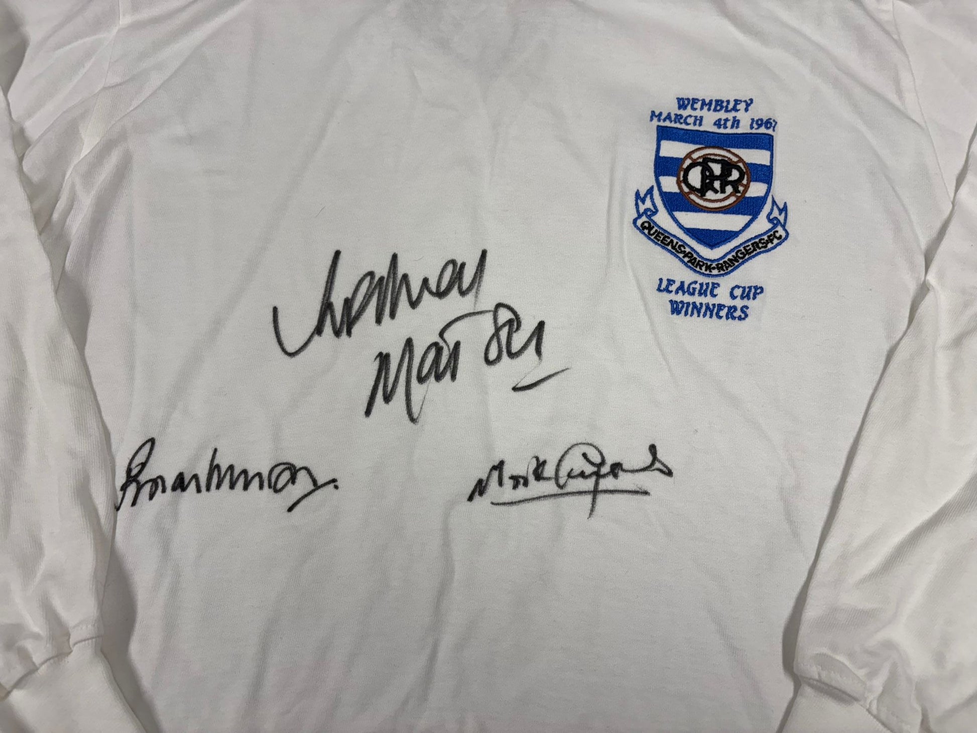 1967 QPR League Cup Winners Football Shirt Signed by R Marsh, R Morgan & M Lazarus + COA