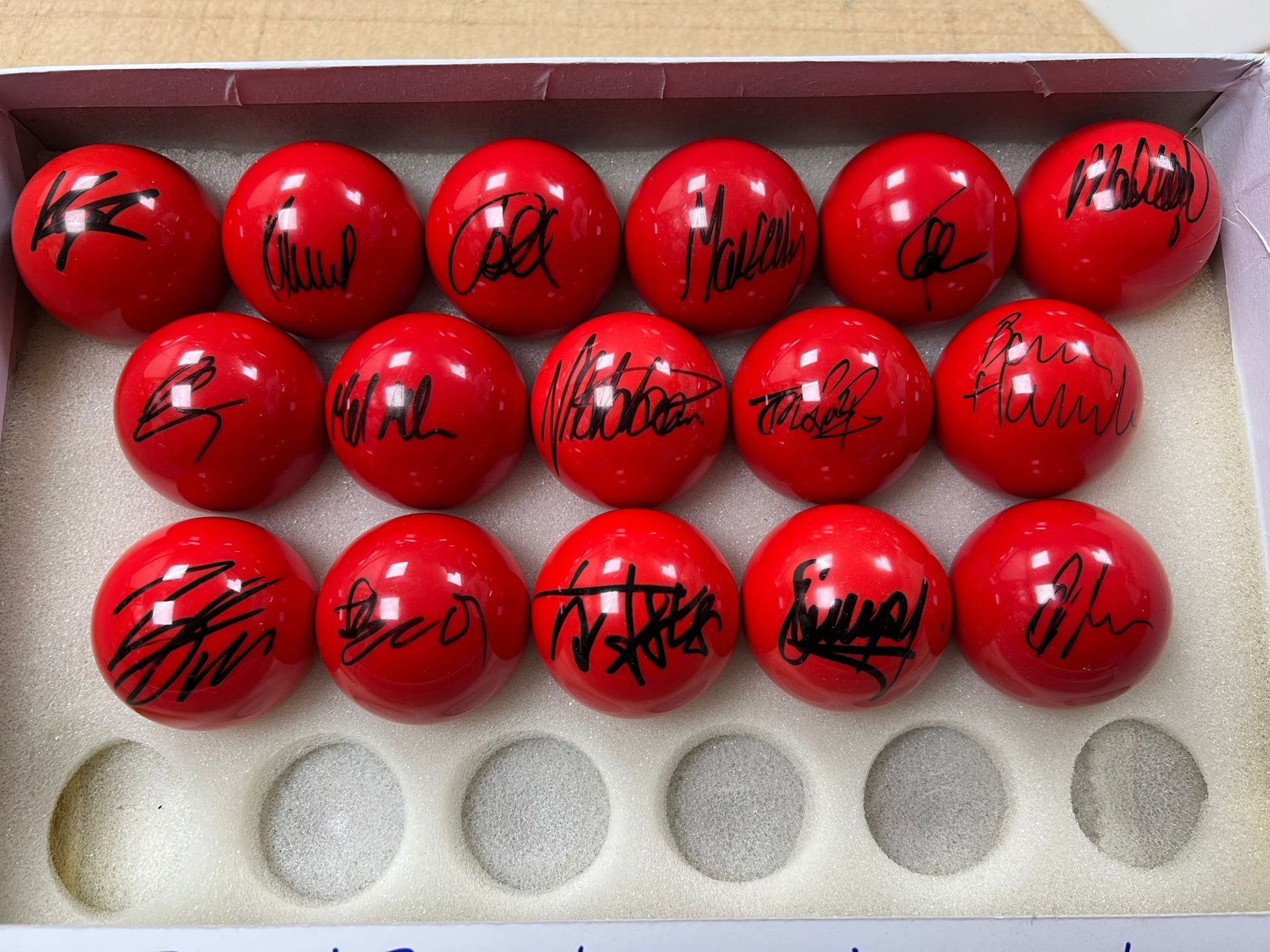 RARE Set of 32 Signed RED Snooker Balls by 2025 World Championship Players @ Crucible + COA