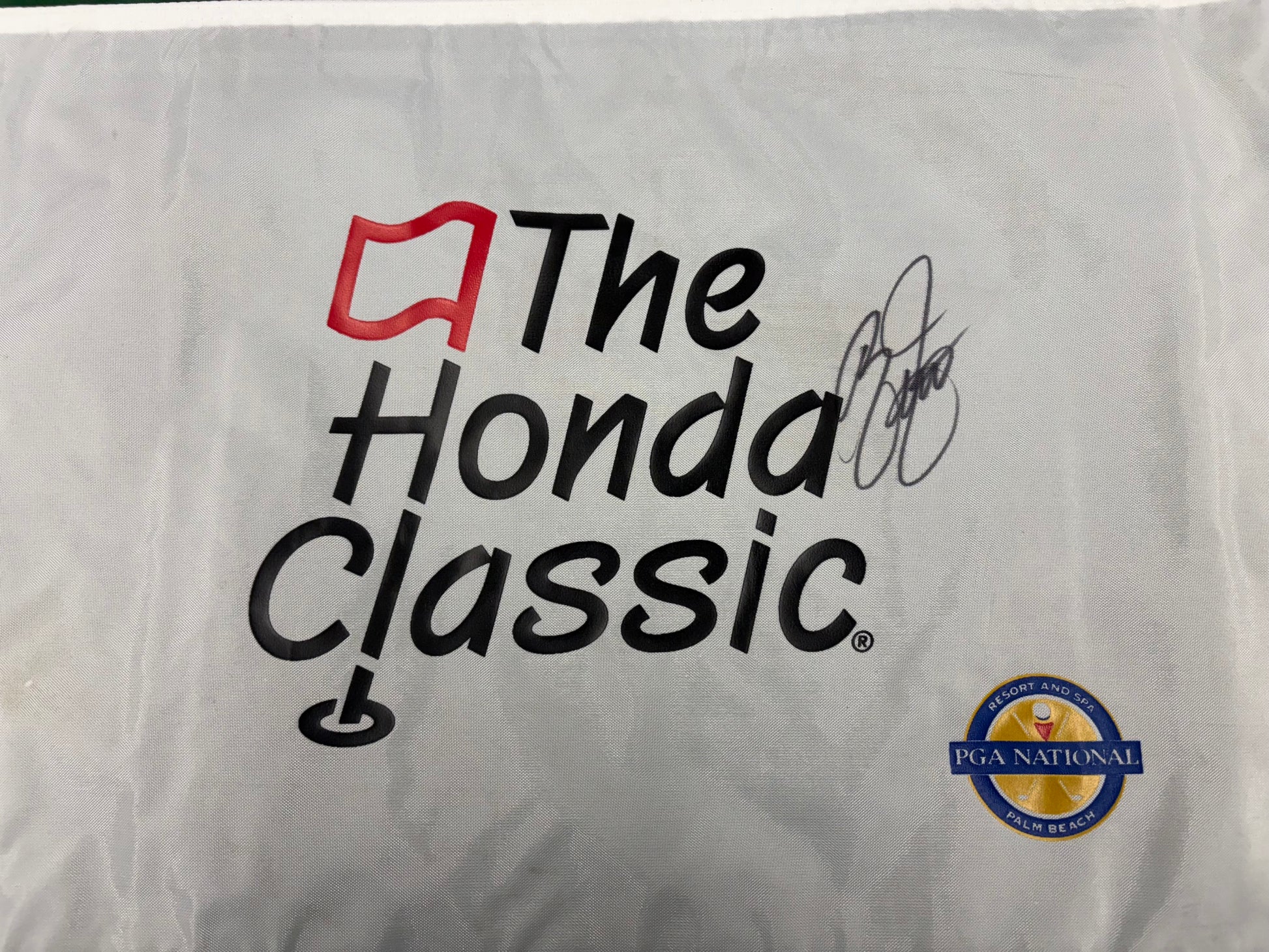 Enhance your golf memorabilia collection with this signed The Honda Classic Golf Pin Flag + COA. This authentic pin flag, personally signed by Rickie Fowler, celebrates his victory at the 2017 Honda Classic. A must-have for any golf fan.