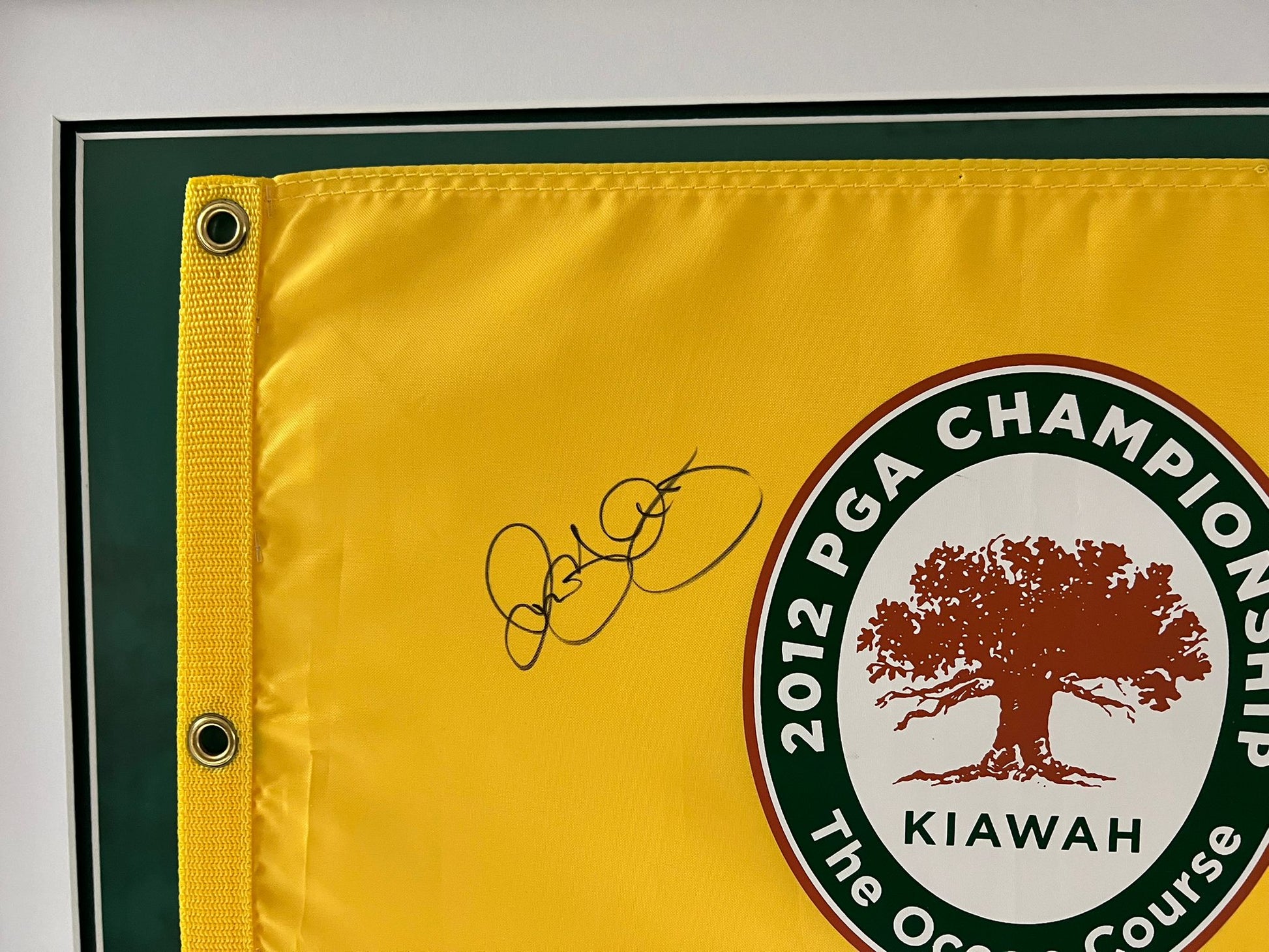 On offer here is a Career Grand Slam Frame including a 2012 US PGA Golf Flag