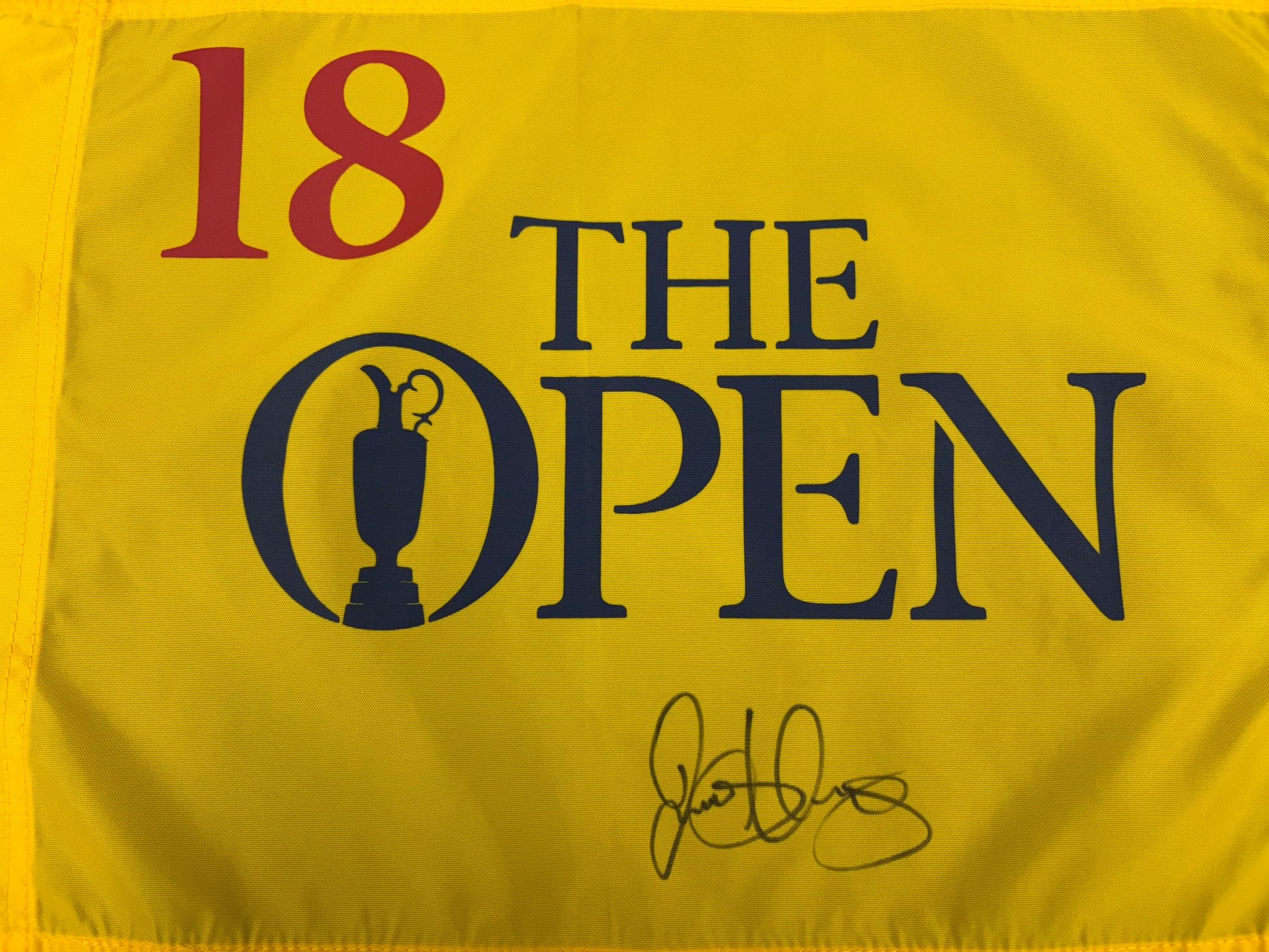 Score a hole-in-one with this Rory McIlroy signed Open Golf Flag! This is a must-have for any golf lover's collection. Comes with a COA from the dealer.