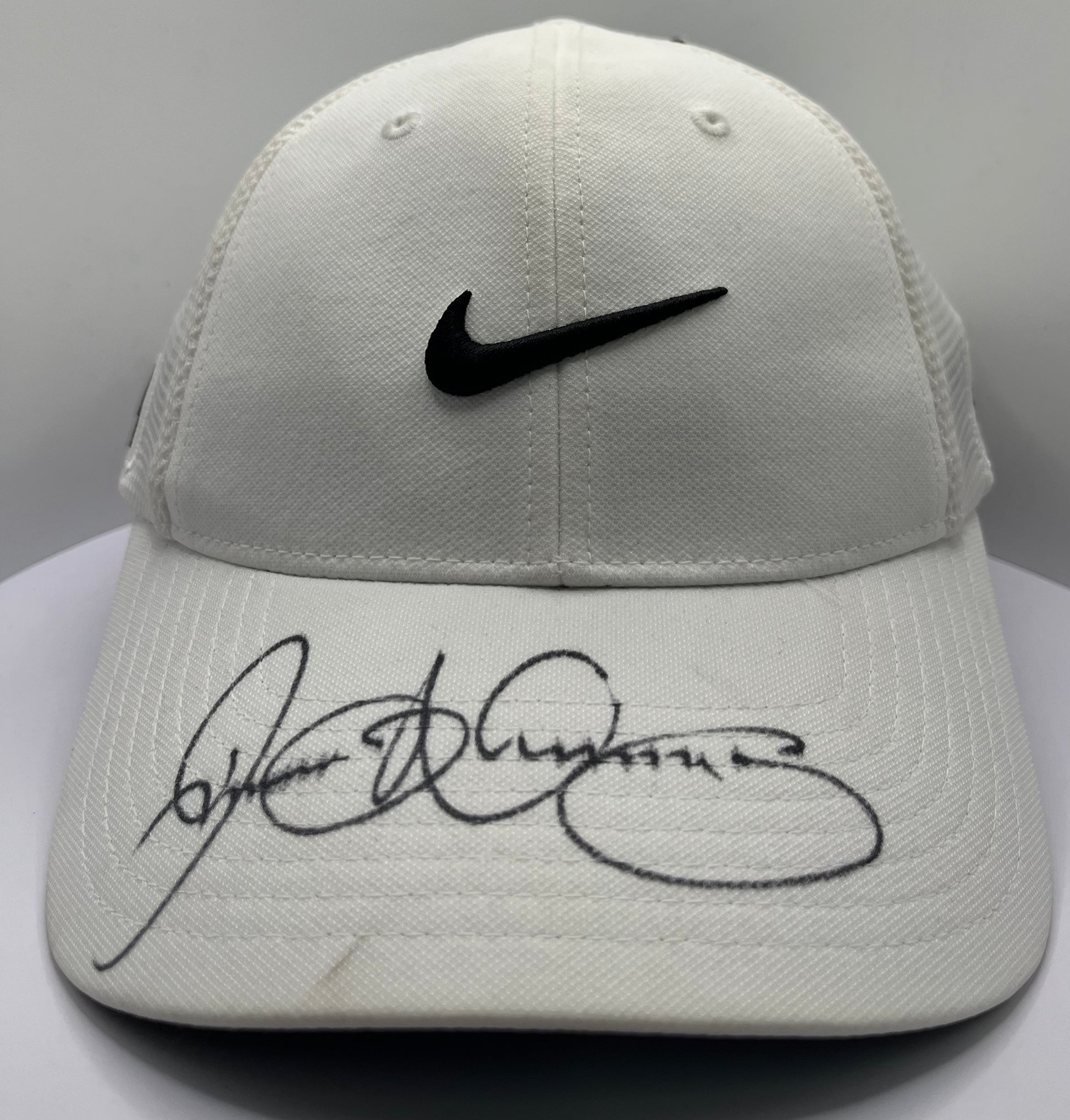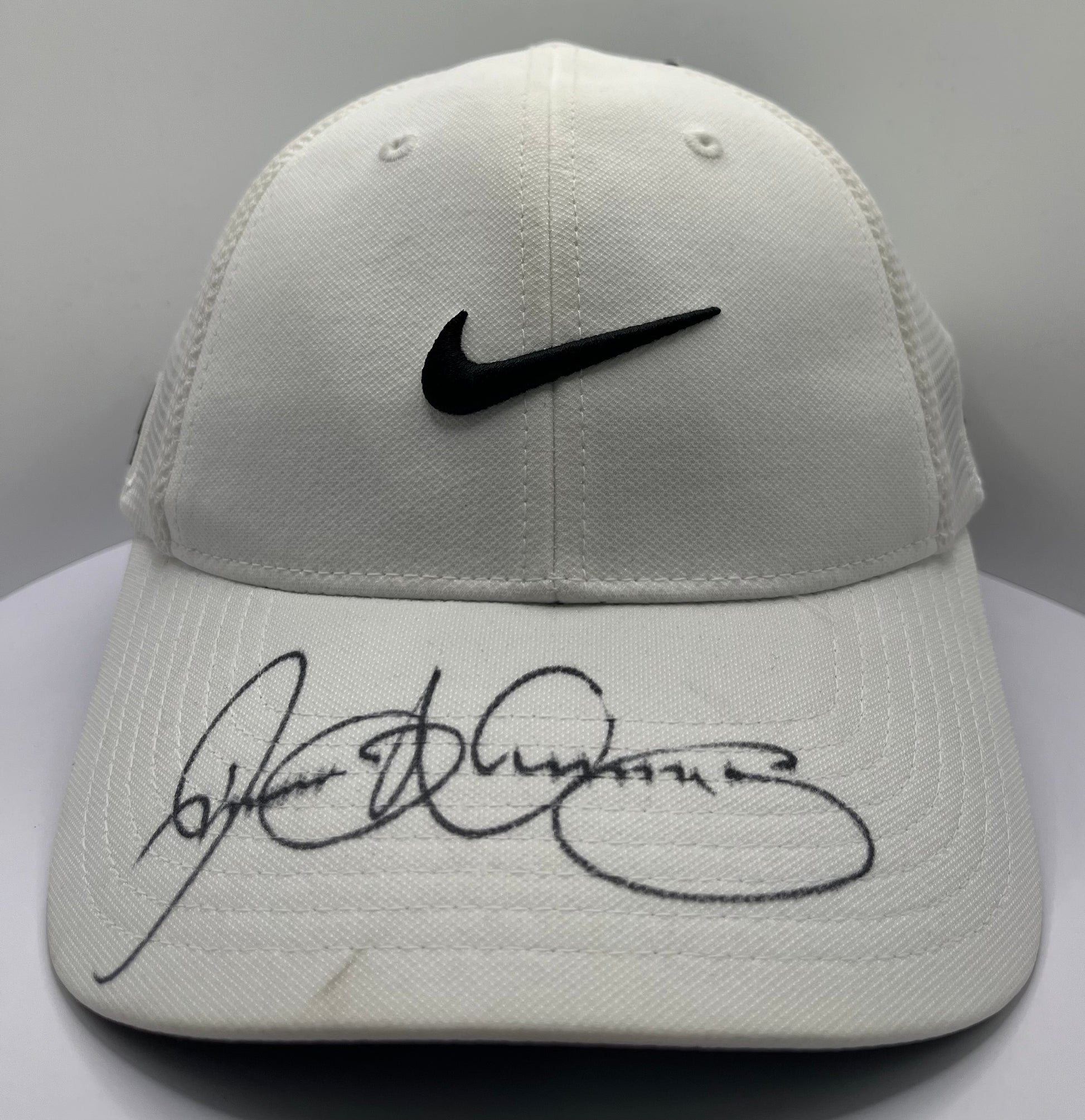 This white and black Nike golf cap is personally signed by Rory McIlroy and comes with a Certificate of Authenticity. Show your support for the professional golfer while adding a unique and valuable piece to your collection. Own a part of golf history with this authentic signed item.