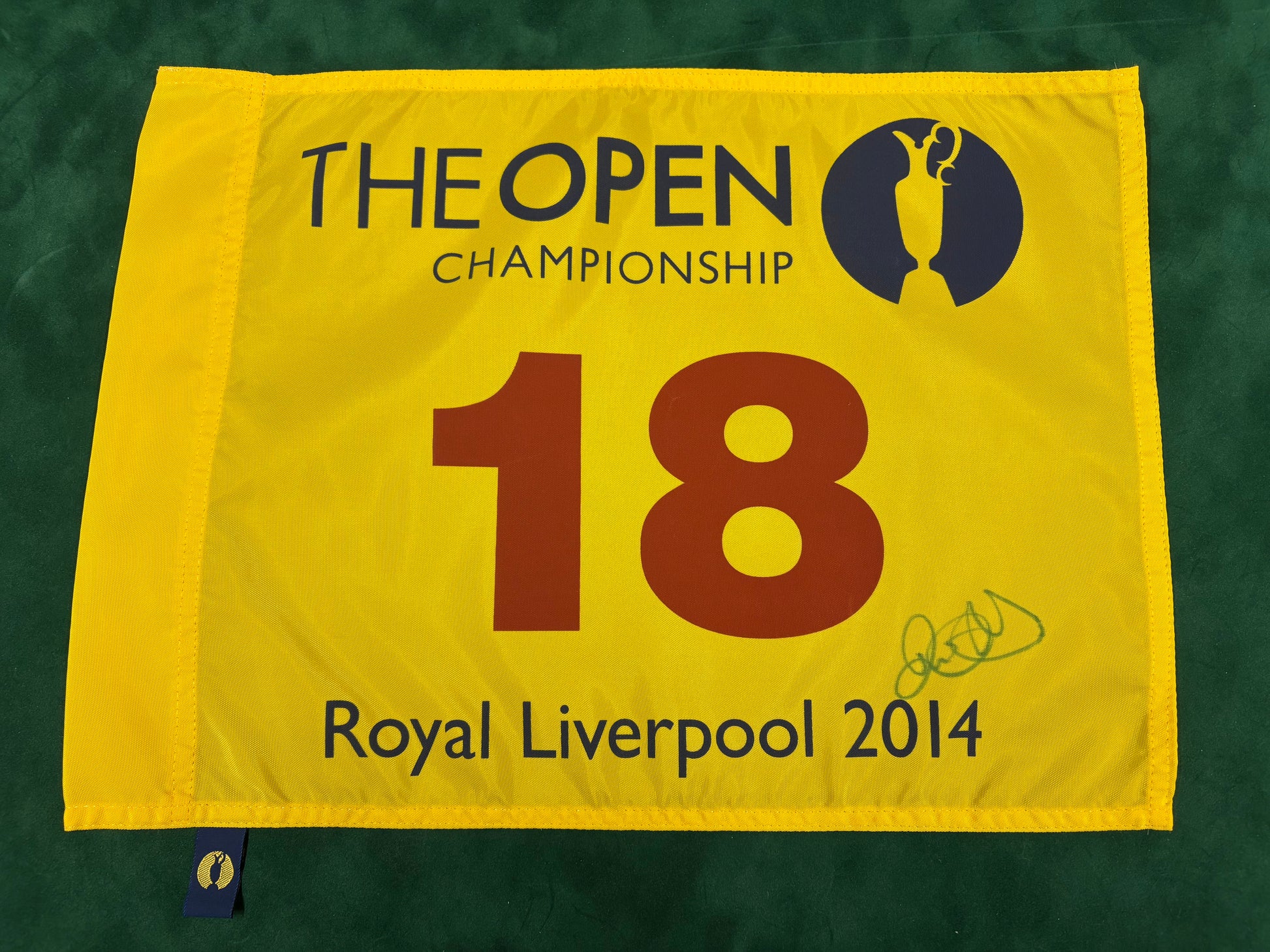 Rory McIlroy Winner Signed 2014 Open at Royal Liverpool Golf Flag + Dealer COA