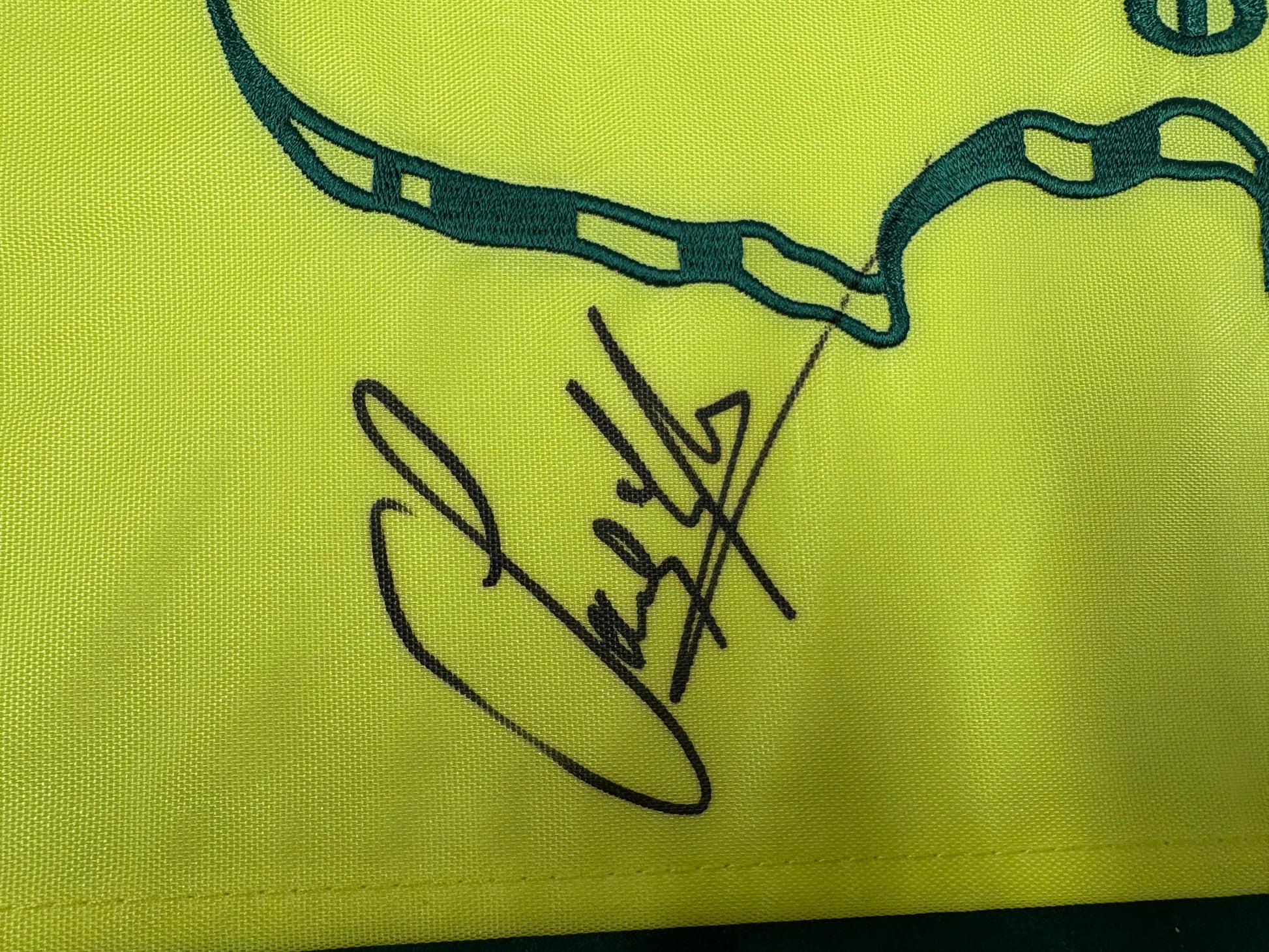Expertly signed by Sandy Lyle, the 1988 Masters Golf Champion, this flag comes with a dealer COA. Own a piece of history and showcase your love for golf with this one-of-a-kind collectible. Limited edition and authentic, this flag is a must-have for any golf enthusiast.