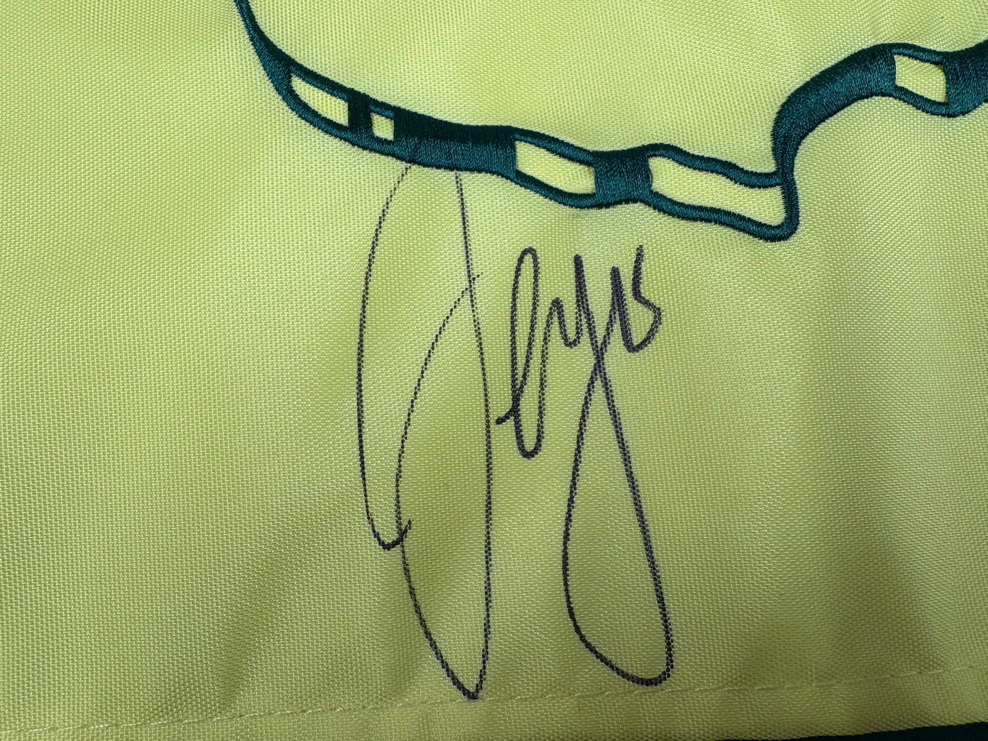This 2017 Masters Golf Pin Flag is a must-have for any golf enthusiast or collector. This pin flag has been personally signed by the 2017 Masters winner, Sergio García, adding a touch of authenticity and value. Don't miss this opportunity to own a piece of golf history. Comes with a dealer COA.