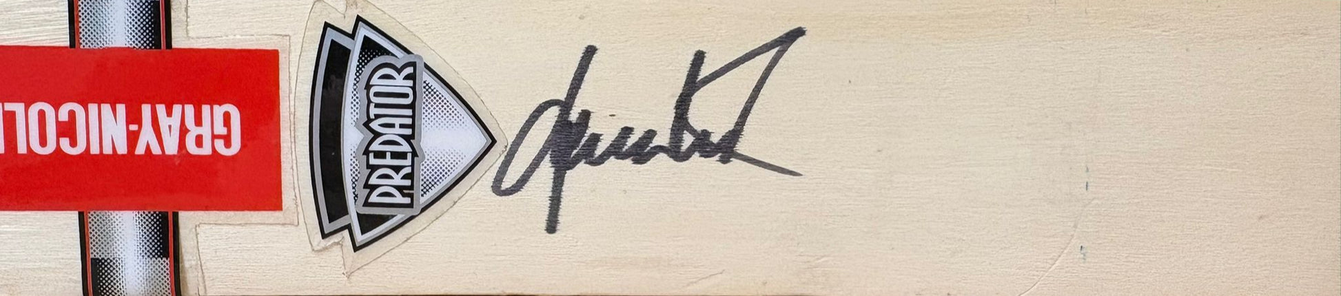 This authentic mini cricket bat bears the signature of Shane Warne, widely regarded as cricket's greatest spin bowler. The bat is accompanied by a dealer Certificate of Authenticity, validating the signature of the Australian cricket icon who revolutionized leg spin bowling with 708 Test wickets. A premium collectible that represents a significant piece of international cricket heritage and showcases the legacy of one of the sport's most influential figures.