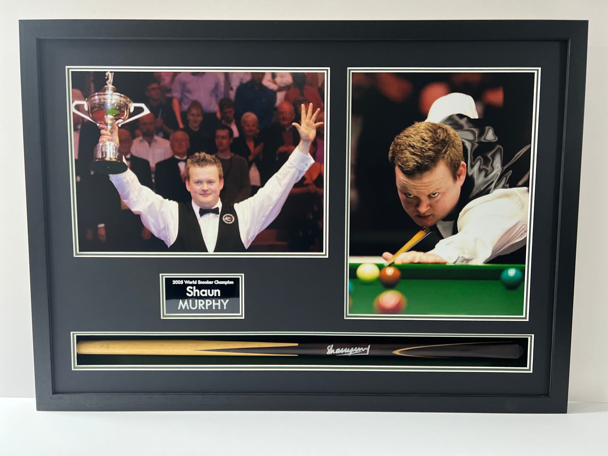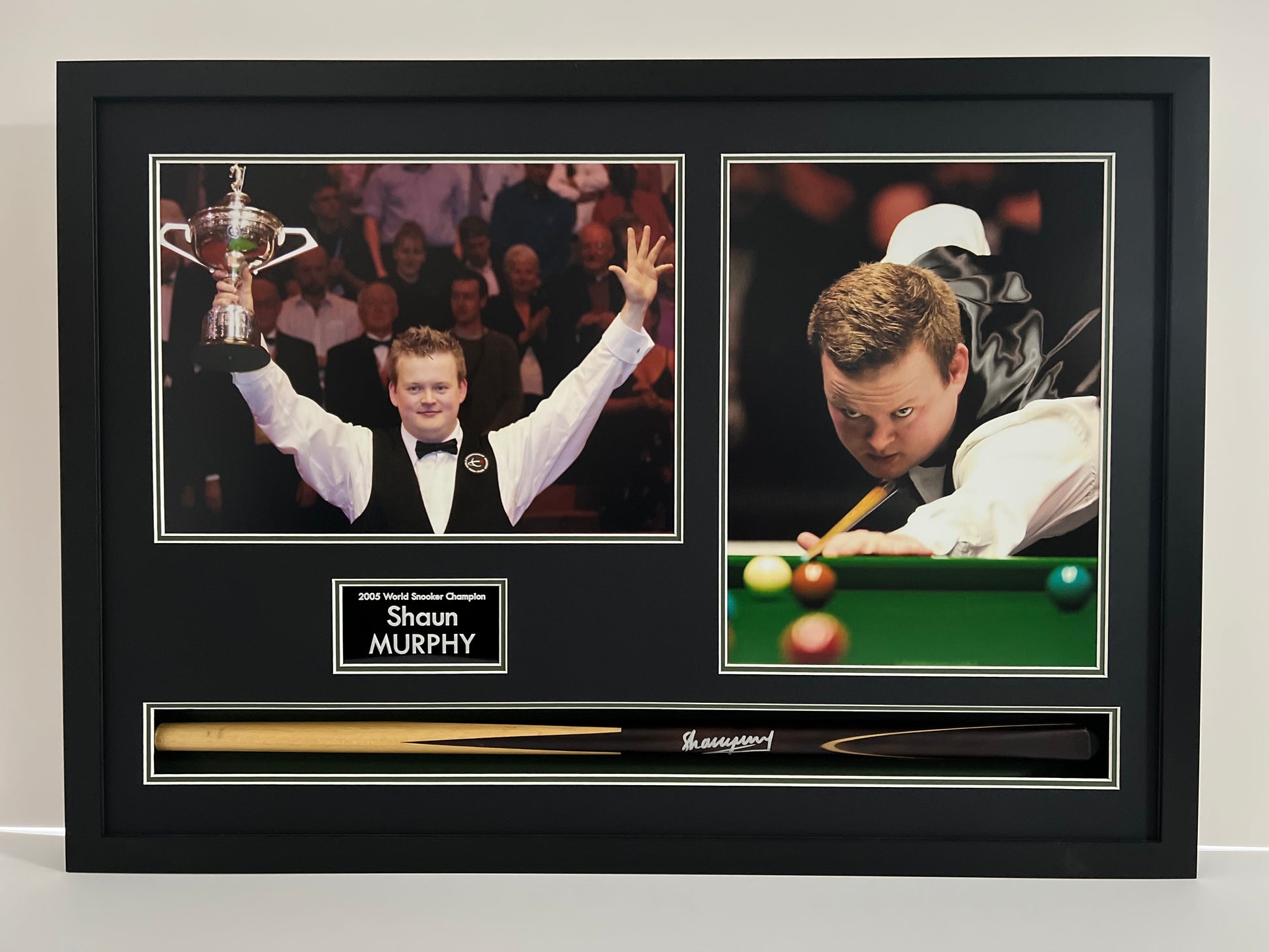 Celebrate the legacy of snooker champion Shaun Murphy with this exclusive signed and framed snooker cue and photo display. Showcasing his iconic triple crown win, this display is a must-have for any snooker enthusiast. Complete with a certificate of authenticity.