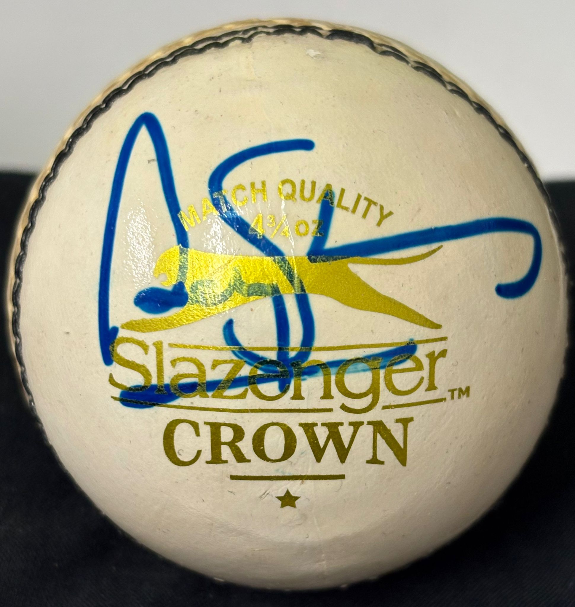 This white cricket ball is signed by England Cricket legend Andrew Strauss. The Certificate of Authenticity (COA) ensures the genuineness of the signature. A must-have for any cricket fan, this ball is a testament to Strauss's talent and success on the field. Own a piece of cricket history with this exclusive item.
