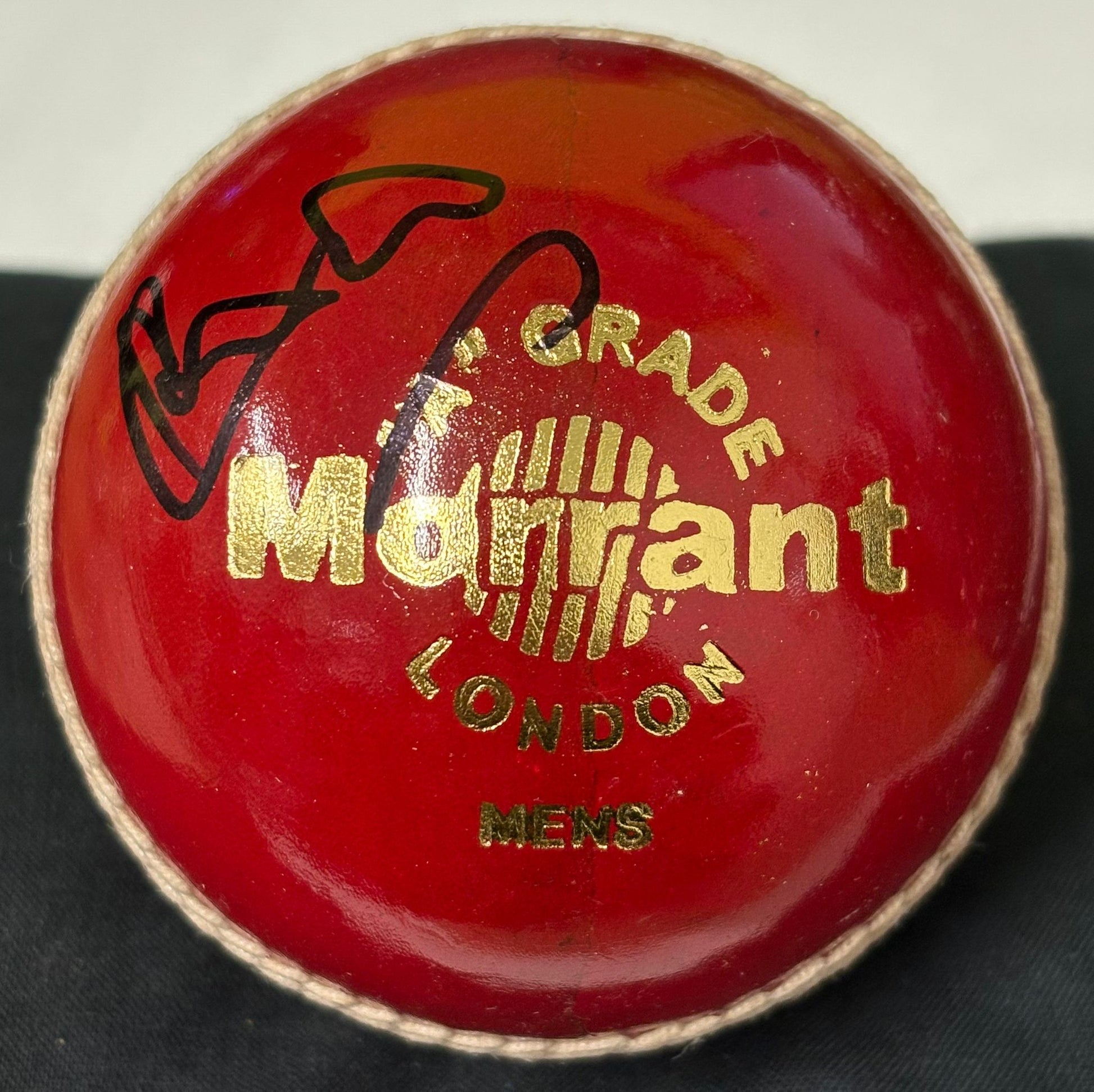 This red cricket ball is signed by renowned England cricket player Ian Botham and is a must-have for any cricket fan or collector. Comes with a certificate of authenticity. Add it to your collection or display it proudly as a testament to Botham's contribution to the game.