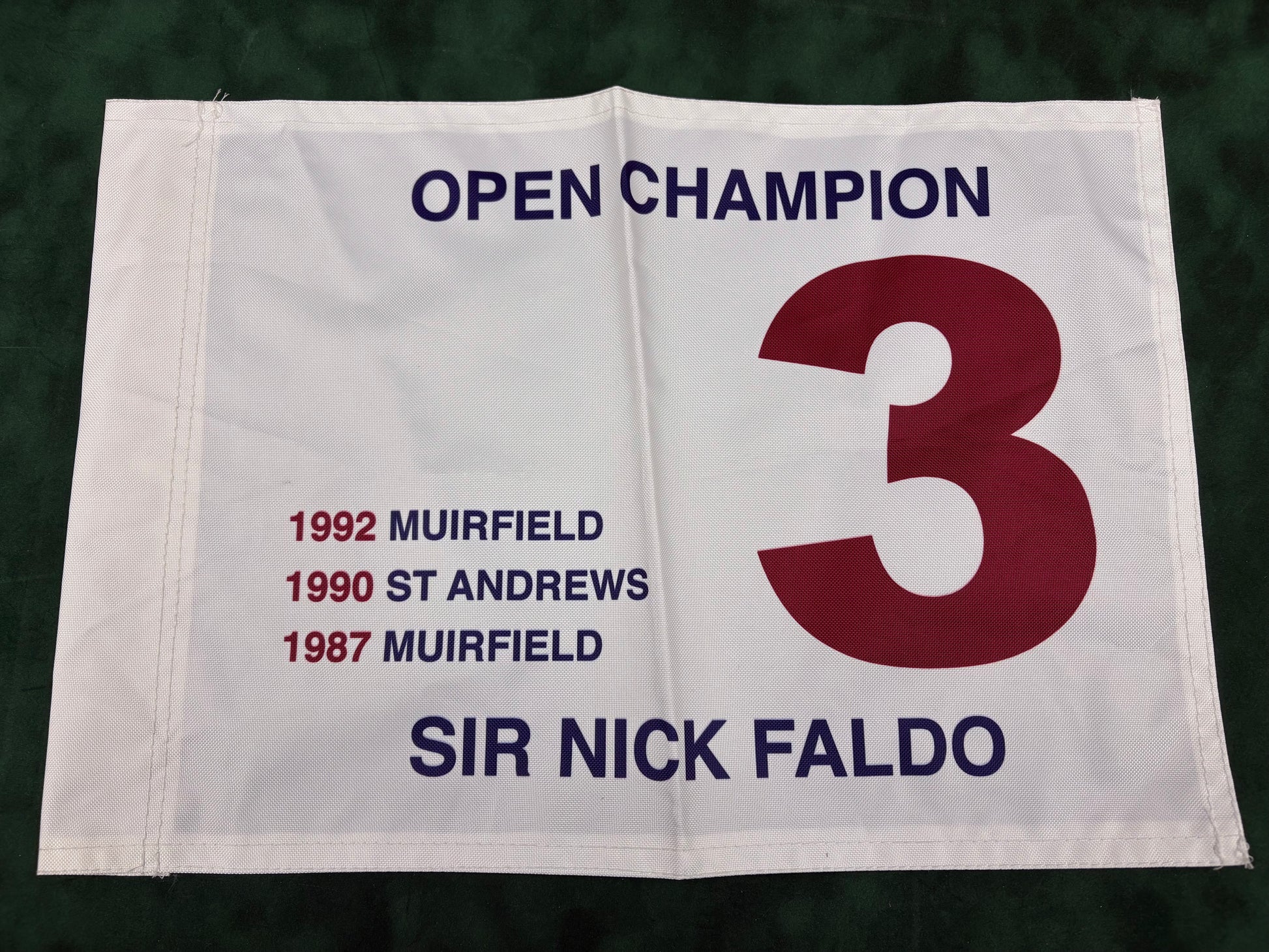 Sir Nick Faldo Three-Time Open Golf Champion Unsigned Golf Flag (White)
