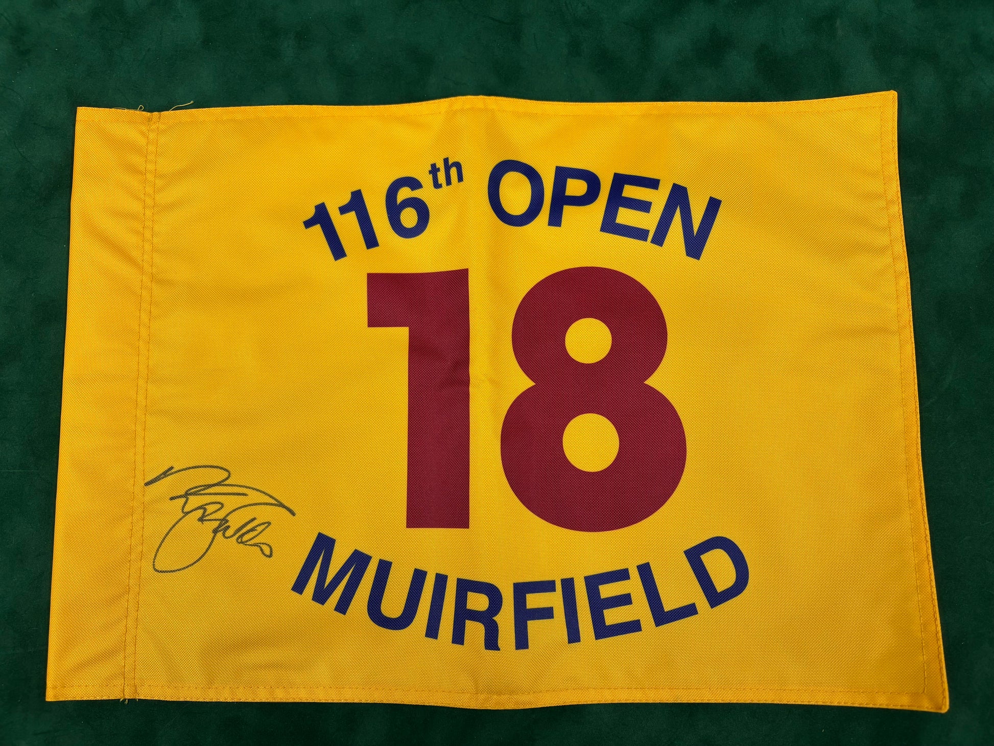 Sir Nick Faldo Winner Signed 116th Open at Muirfield Golf Flag + Dealer COA
