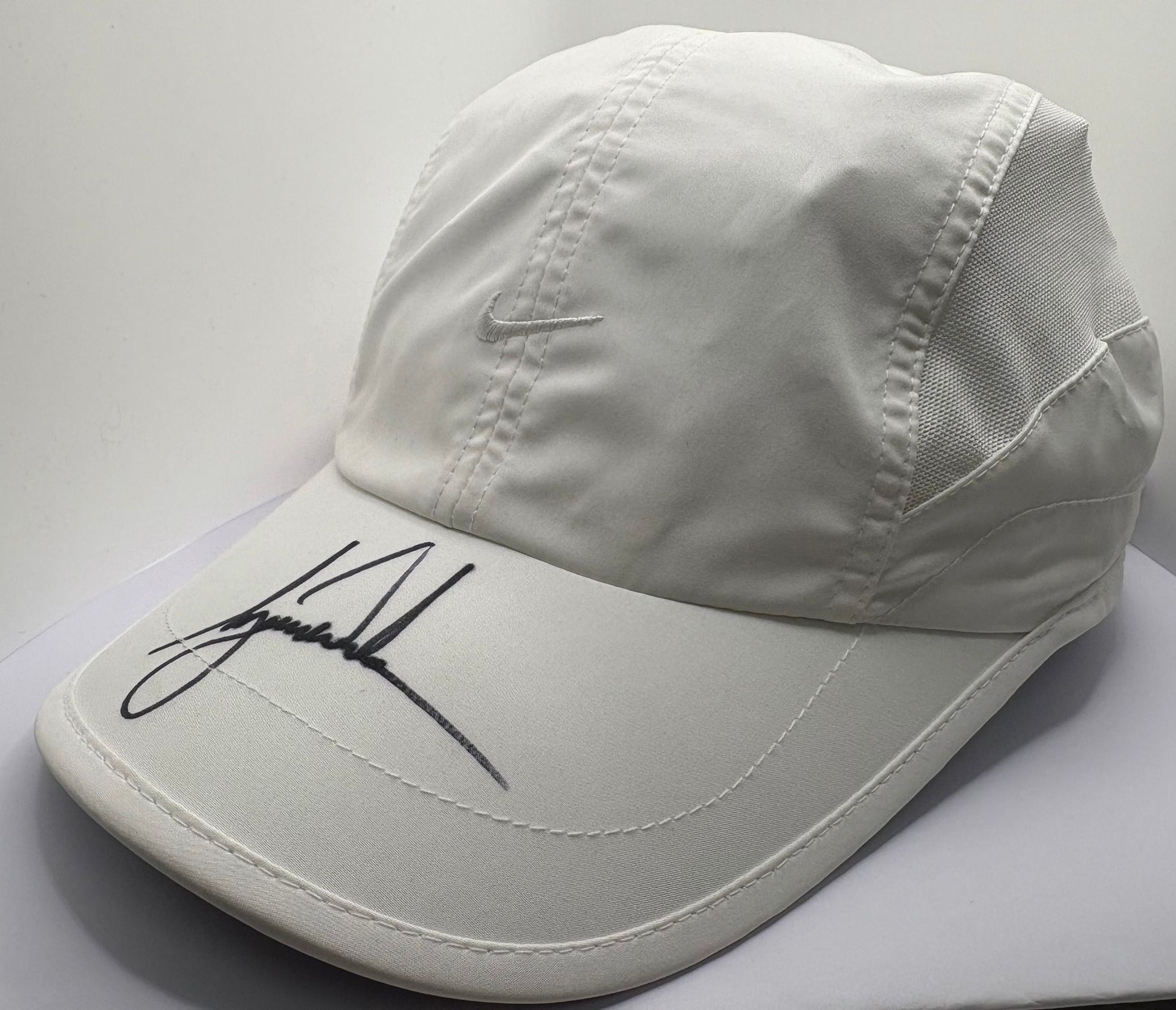 This white Nike golf cap is a must-have for any Tiger Woods fan. Signed by the GOAT himself, it includes a certificate of authenticity for added peace of mind. Show off your love for the legendary golfer while adding a unique piece to your collection.