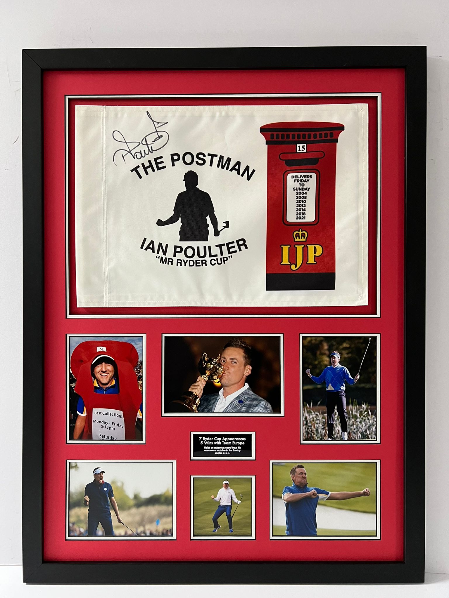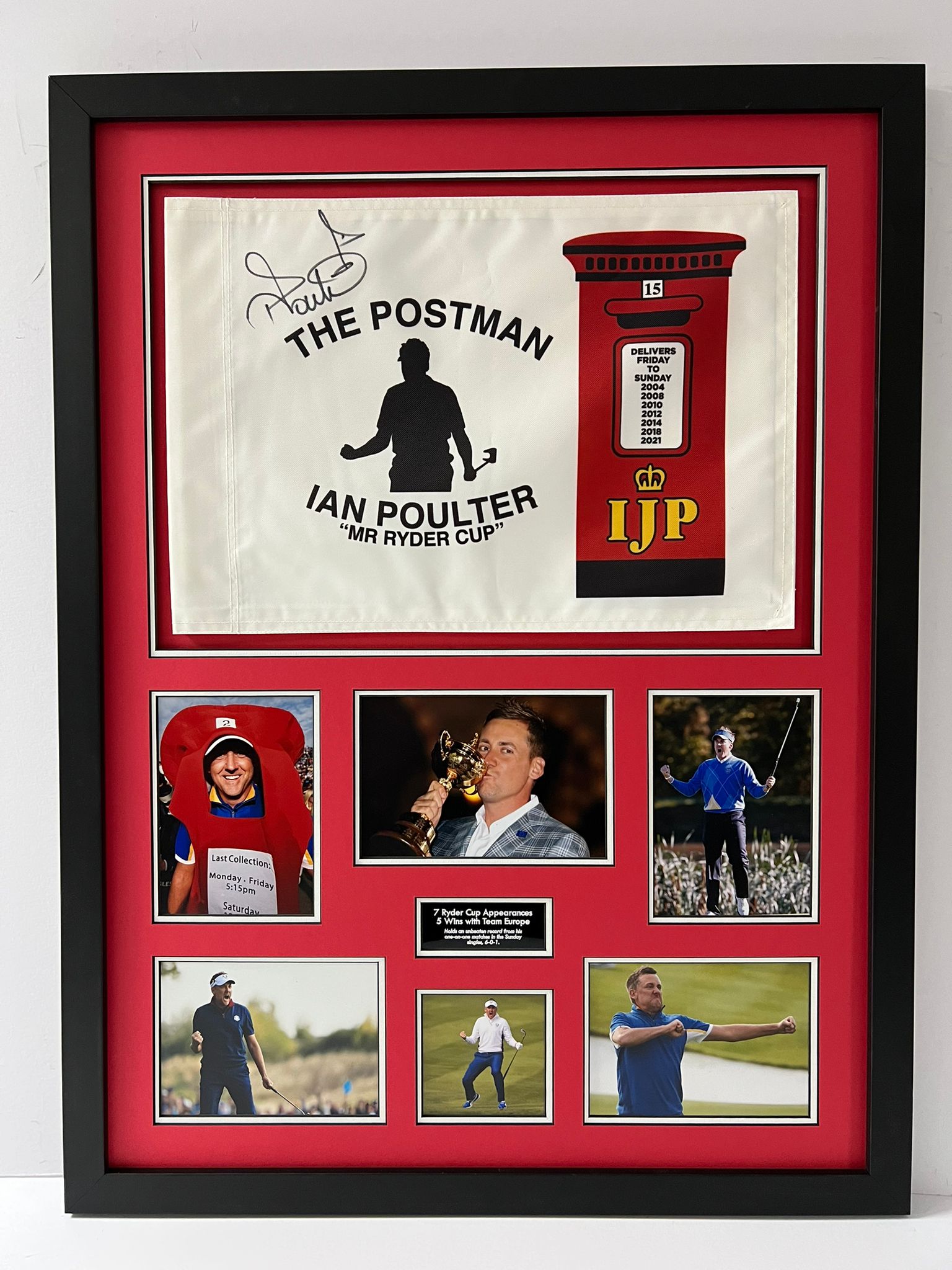'The Postman' Ian Poulter Signed & Framed Golf Pin Flag Display + Dealer COA