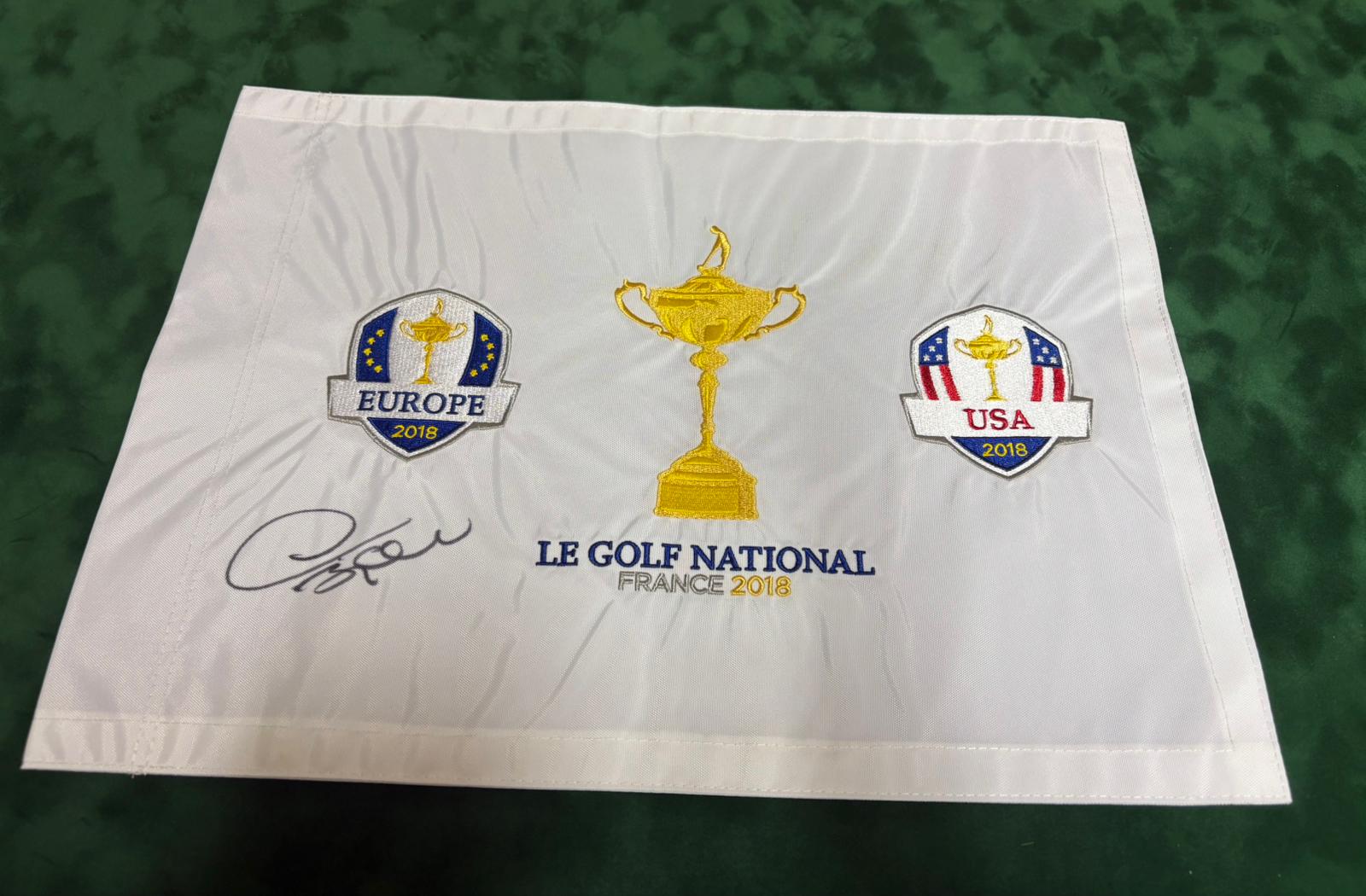 Thomas Bjørn Captain Signed 2018 Ryder Cup at Le Golf National Golf Flag + Cert