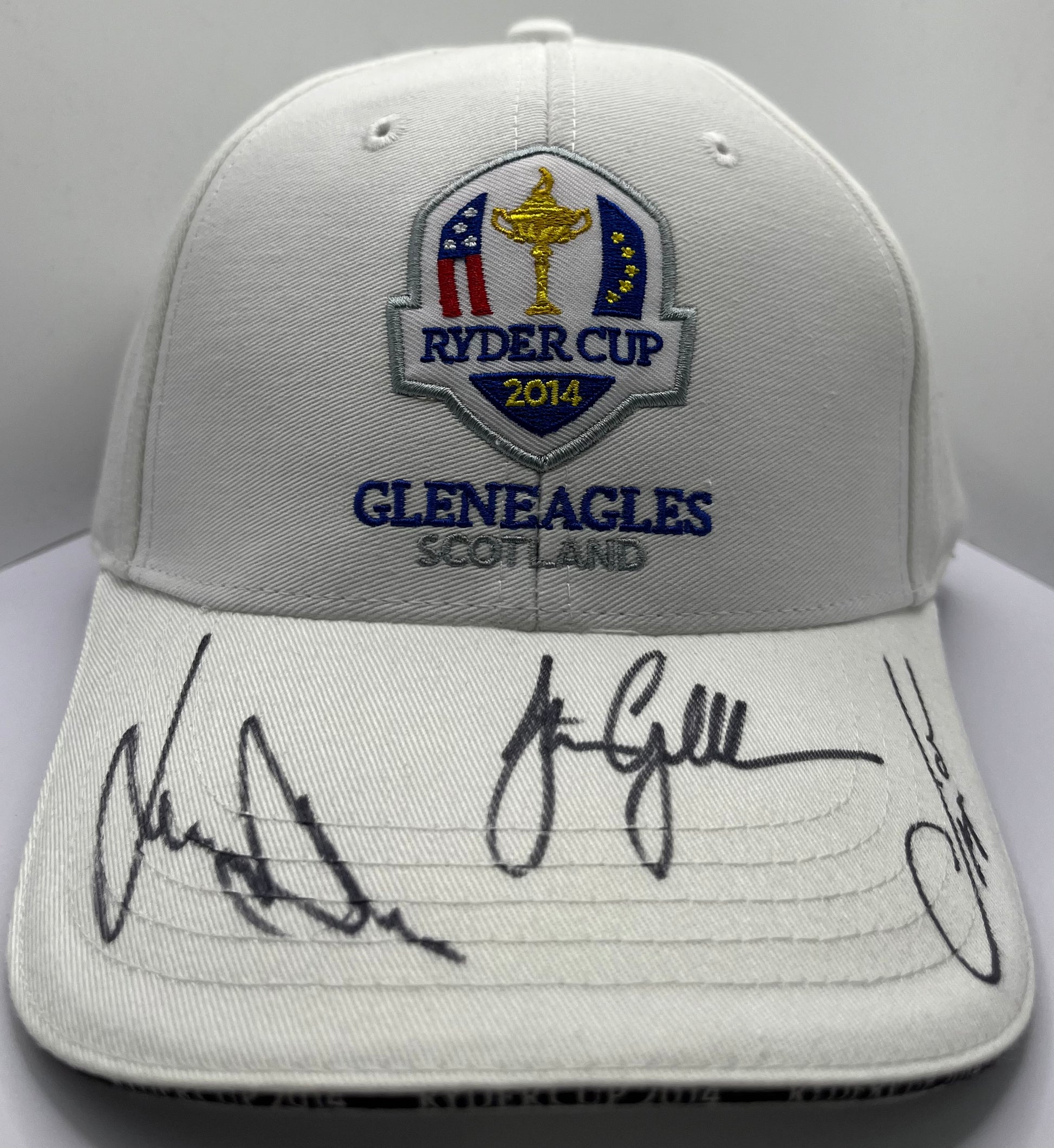 This 2014 Ryder Cup Golf Cap is signed by Thomas Bjørn, Jamie Donaldson, and Stephen Gallacher - three of the most renowned names in golf. Comes with a Certificate of Authenticity, this cap is a true collector's item for any golf enthusiast.