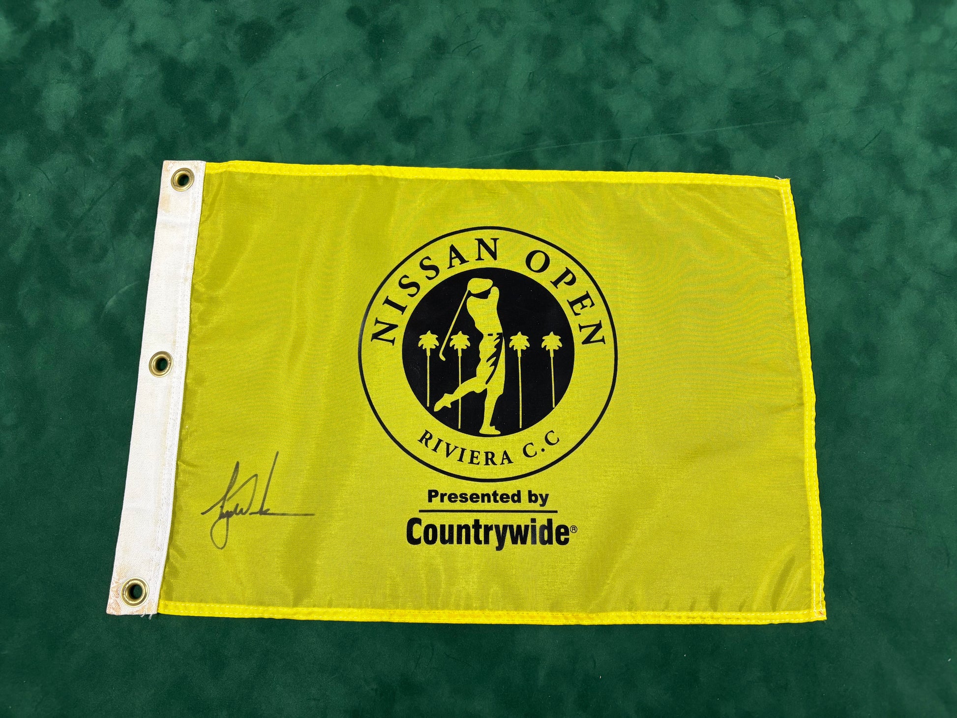Tiger Woods Rare Signed Nissan Open at Riviera CC Golf Pin Flag + Dealer COA