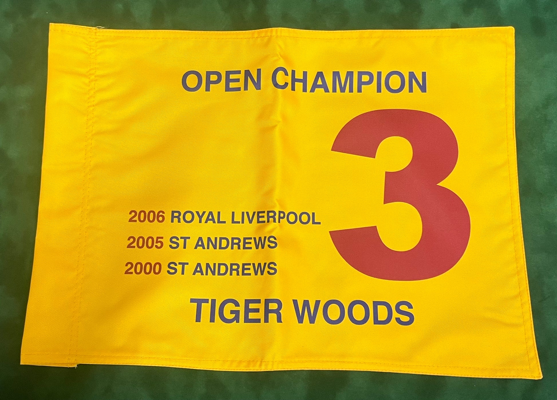 Tiger Woods Three-Time Open Golf Champion Unsigned Golf Flag (Yellow)