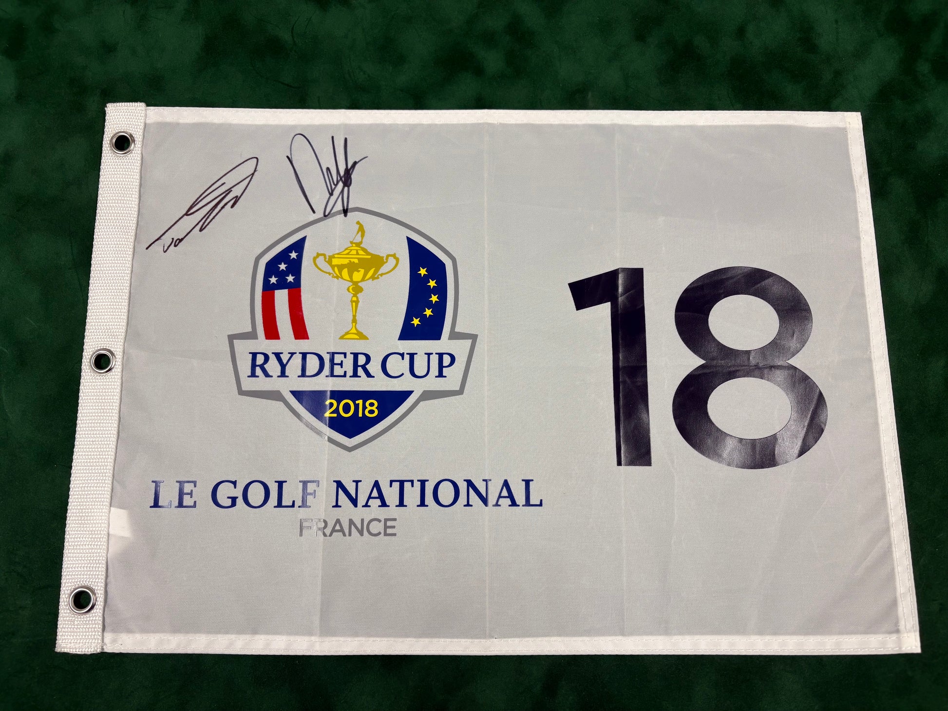 On offer here is a Ryder Cup Golf Pin Flag signed by both
