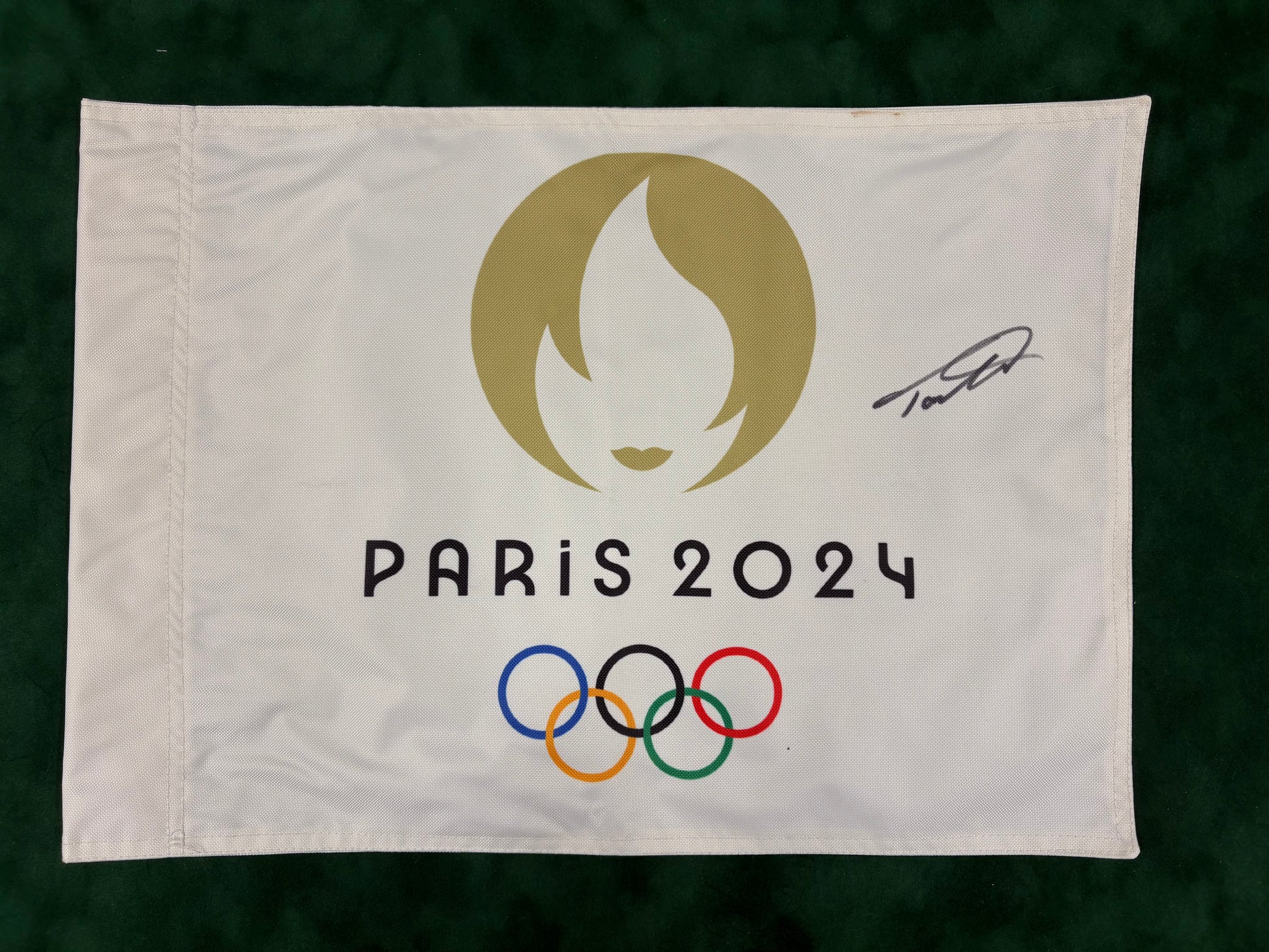 Tommy Fleetwood Silver Medallist Signed Paris 2024 Olympic Golf Pin Flag + Dealer COA