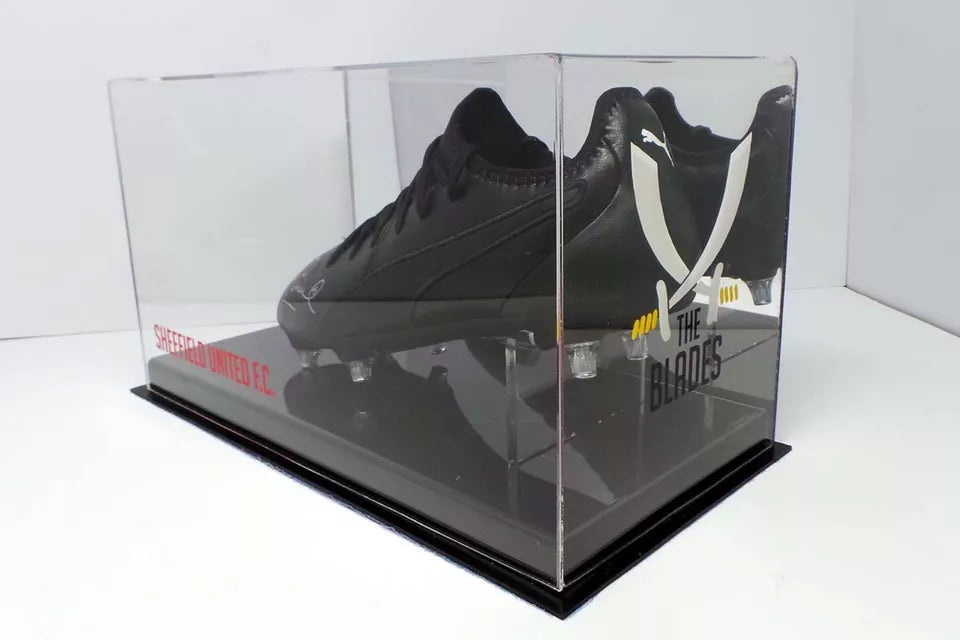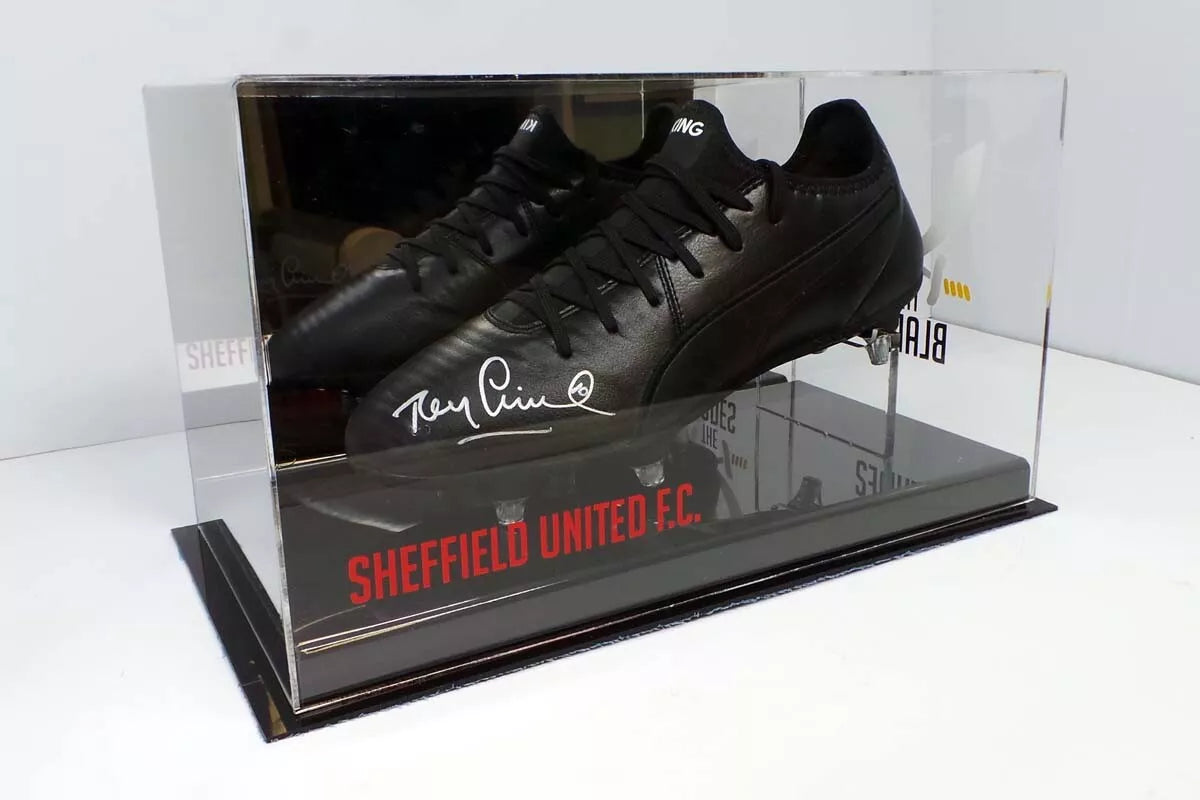 Tony Currie Signed Puma Football Boot In Acrylic Sheffield United Case with COA