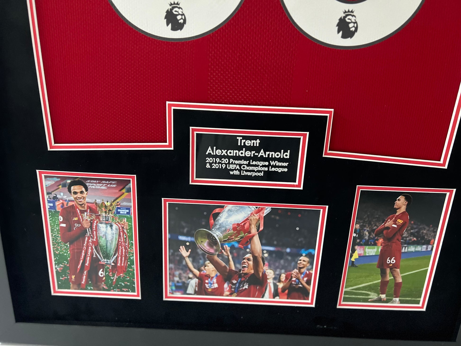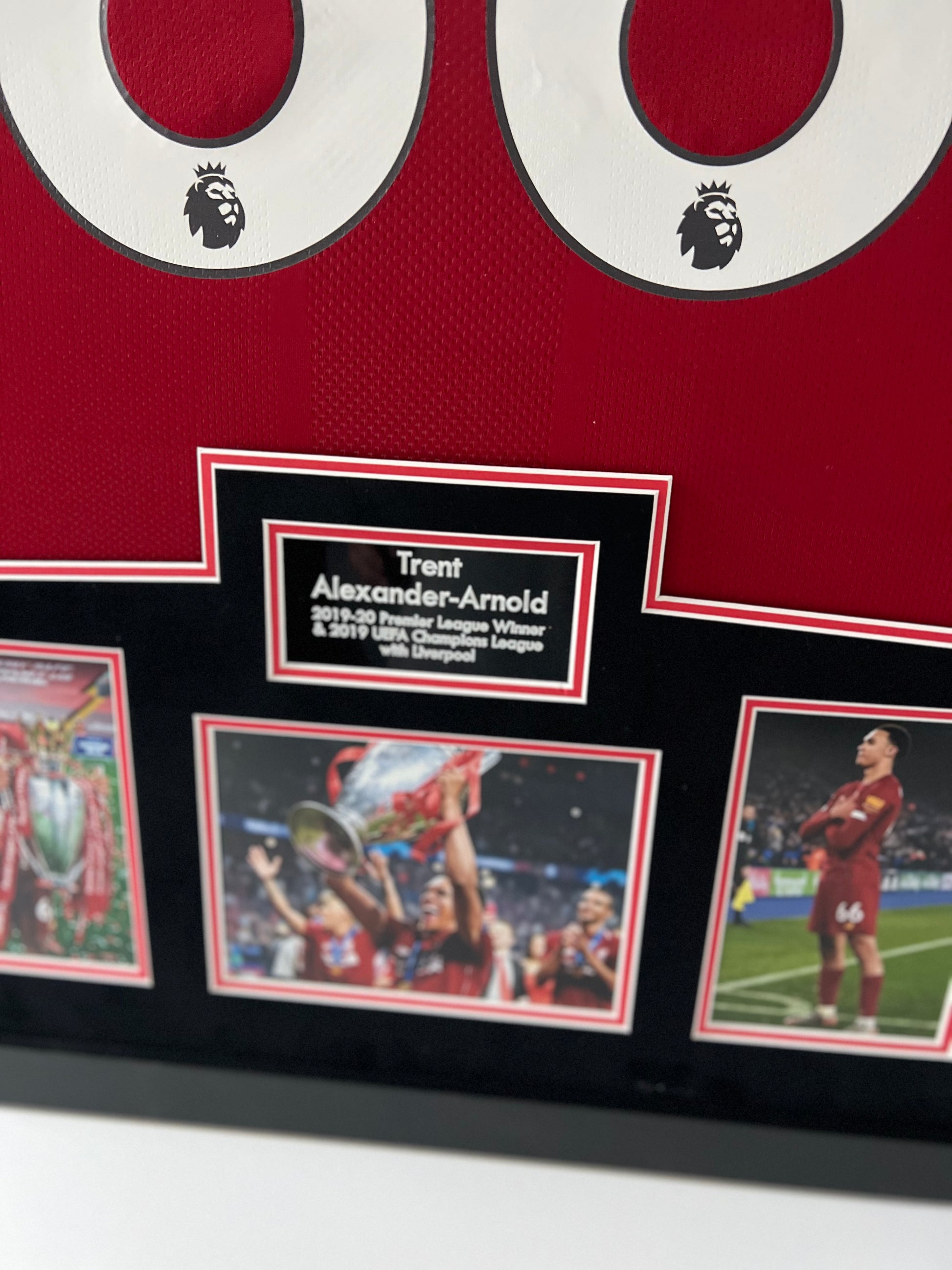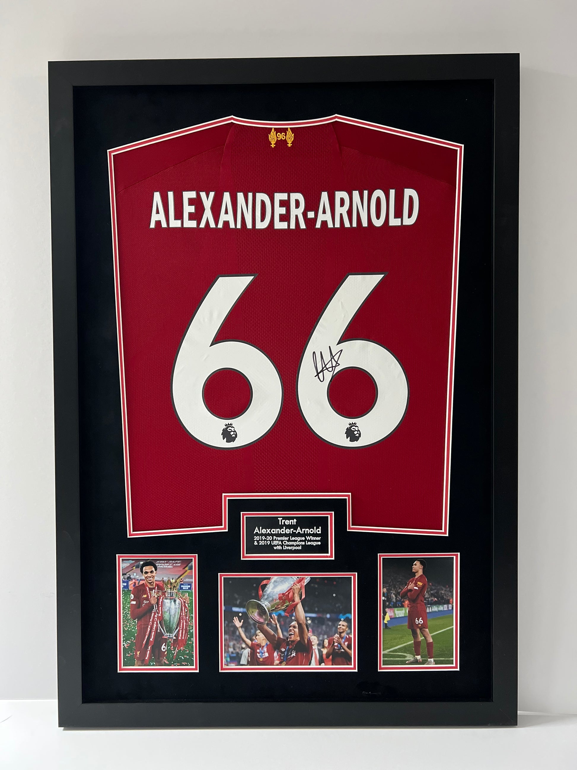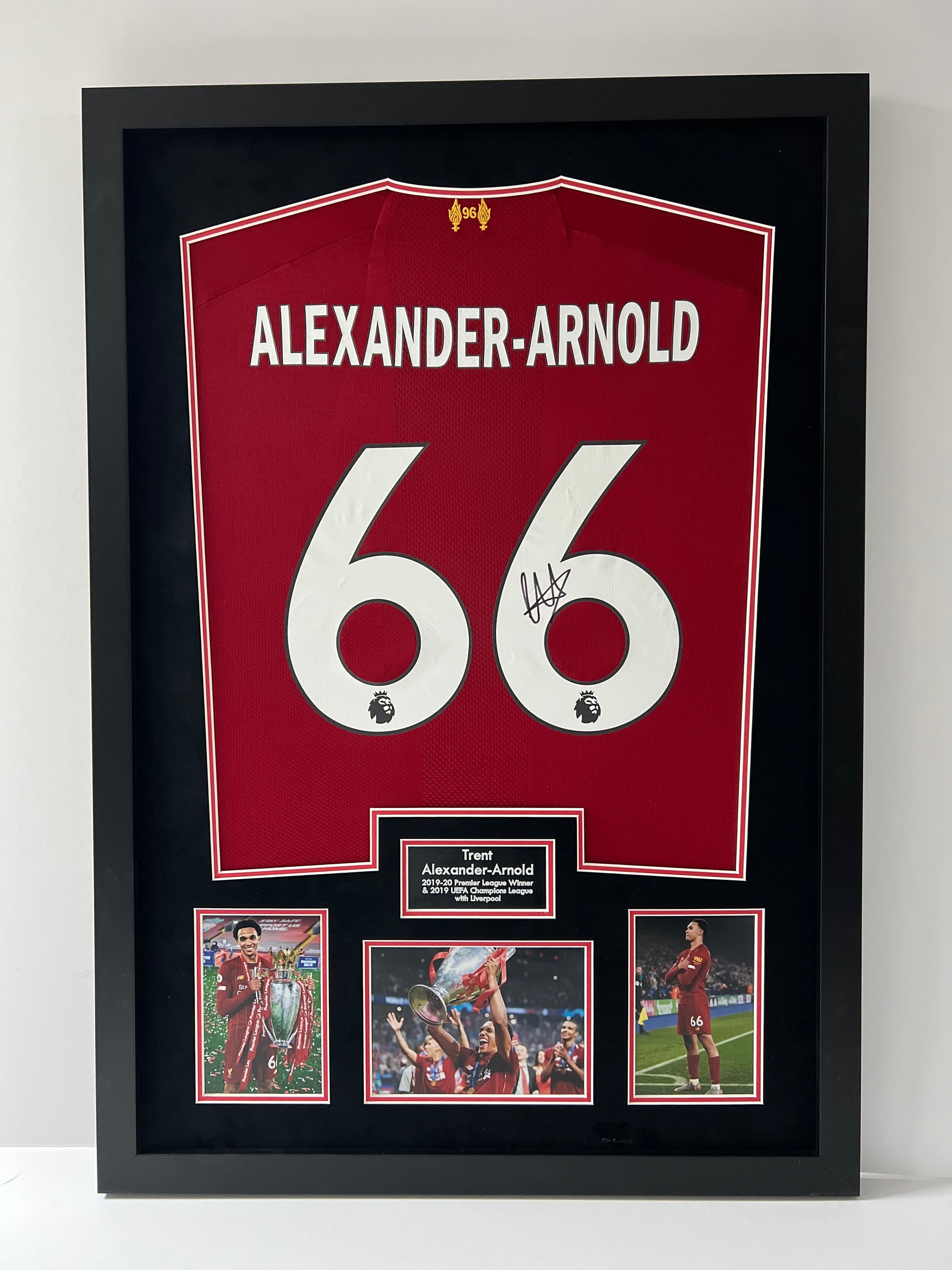 Own a piece of Liverpool history with this authentic Trent Alexander-Arnold signed and framed shirt display. This professionally framed display also includes a dealer COA, guaranteeing the authenticity of the signature. A must-have for any Liverpool fan or collector.