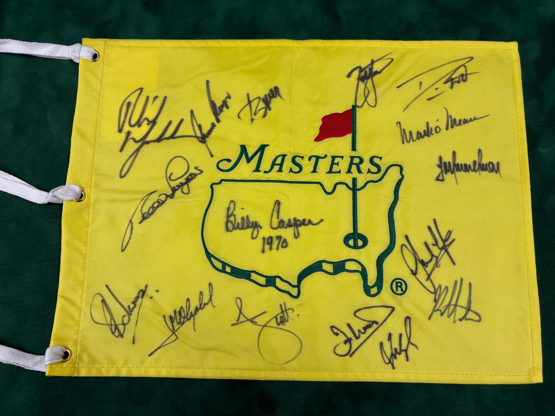 Undated Augusta Masters Golf Flag Signed By 16 Champions (Casper, Scott) + Cert