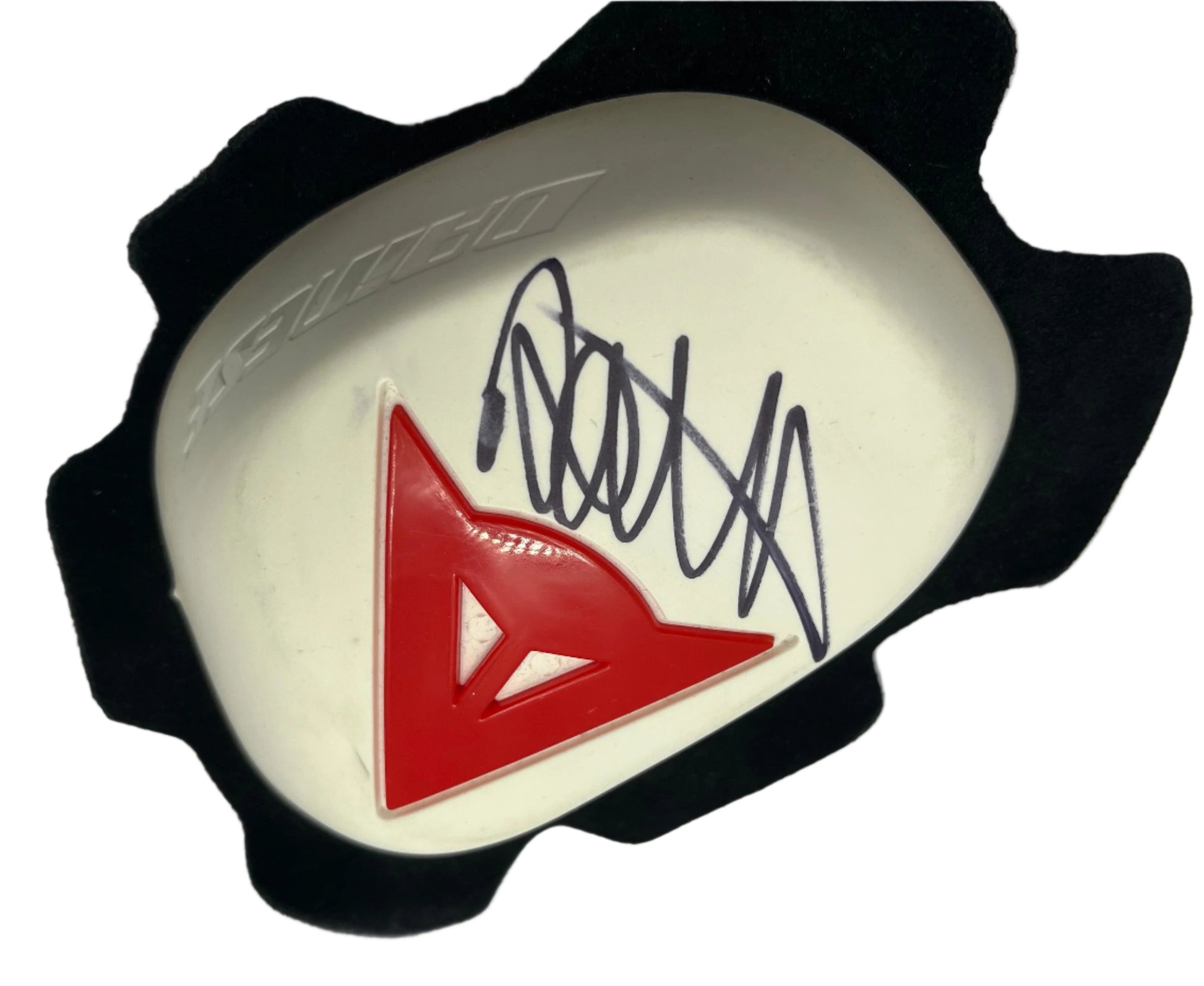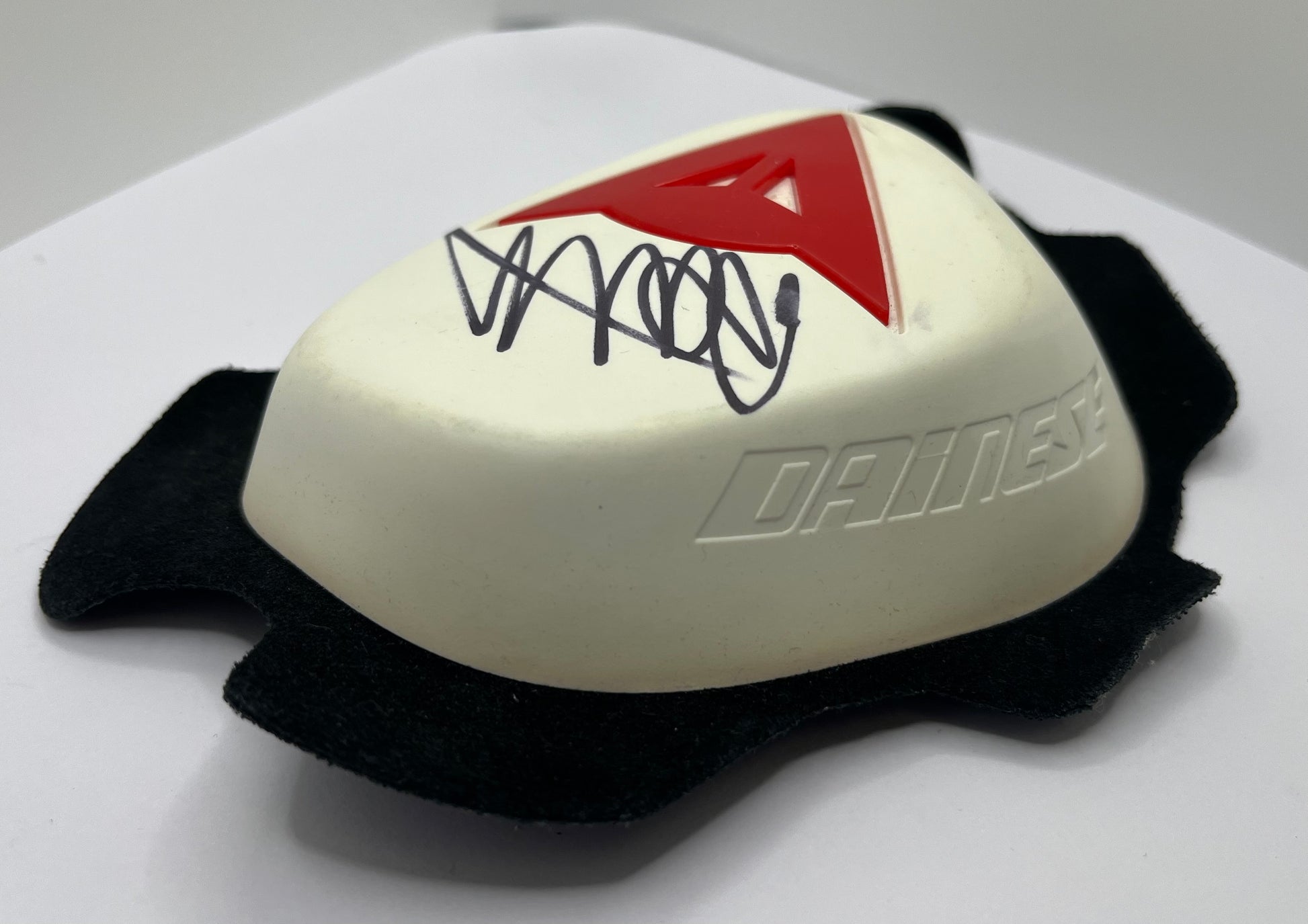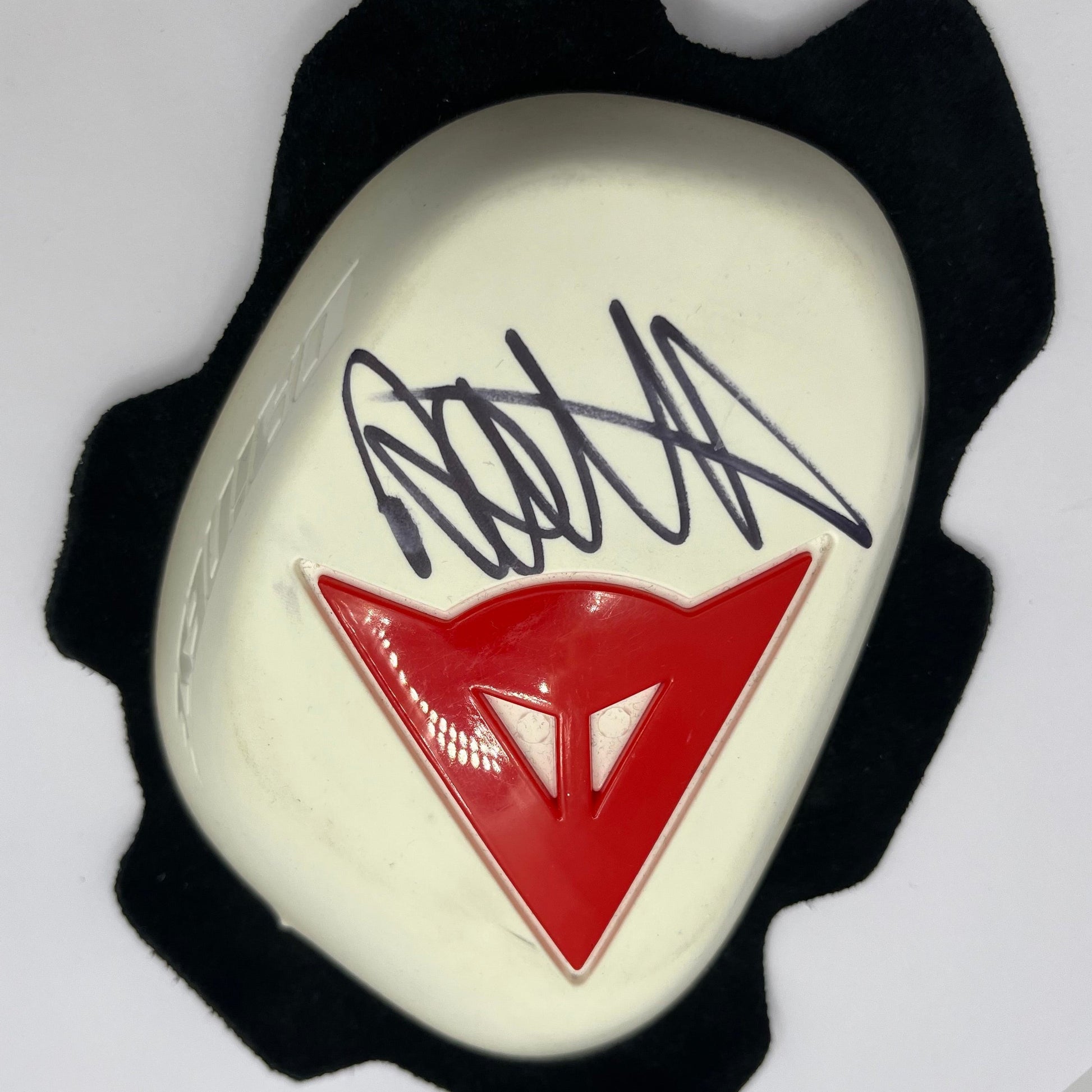 This Dainese knee slider, signed by Valentino Rossi, is the ultimate collectible for avid MotoGP fans. Hand-signed with a Certificate of Authenticity, this limited edition piece showcases the autograph of one of the greatest motorcycle racers of all time. Add a touch of MotoGP history to your collection.
