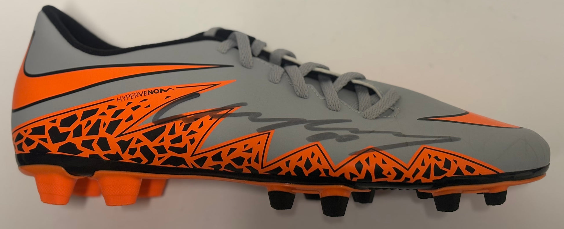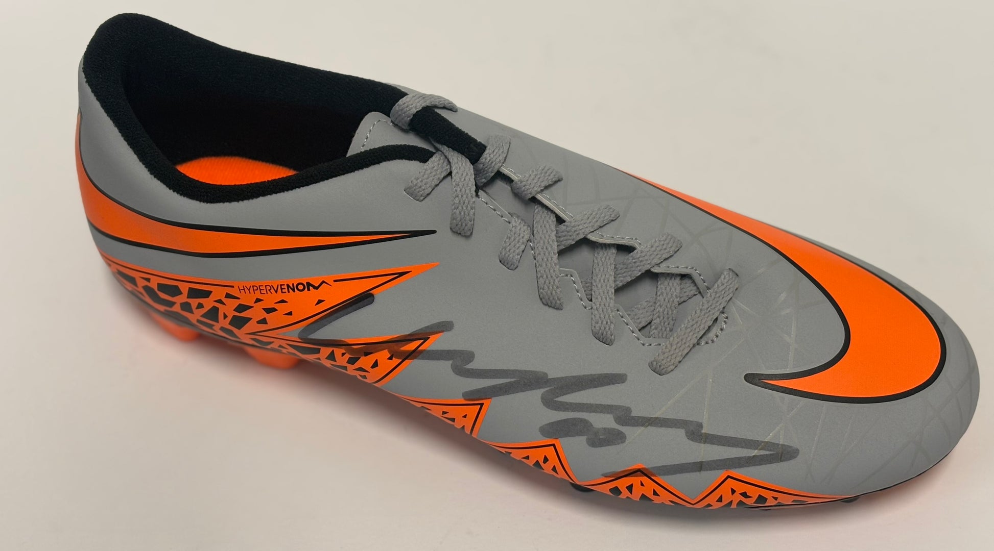 Score some major points with this signed Wayne Rooney football boot, Manchester United FC Legend! The grey and orange Nike boot comes with a certificate of authenticity, and is sure to please any ultimate fan. With 393 appearances for Man U, this signed boot is a true collector's item for fans of Wayne Rooney.